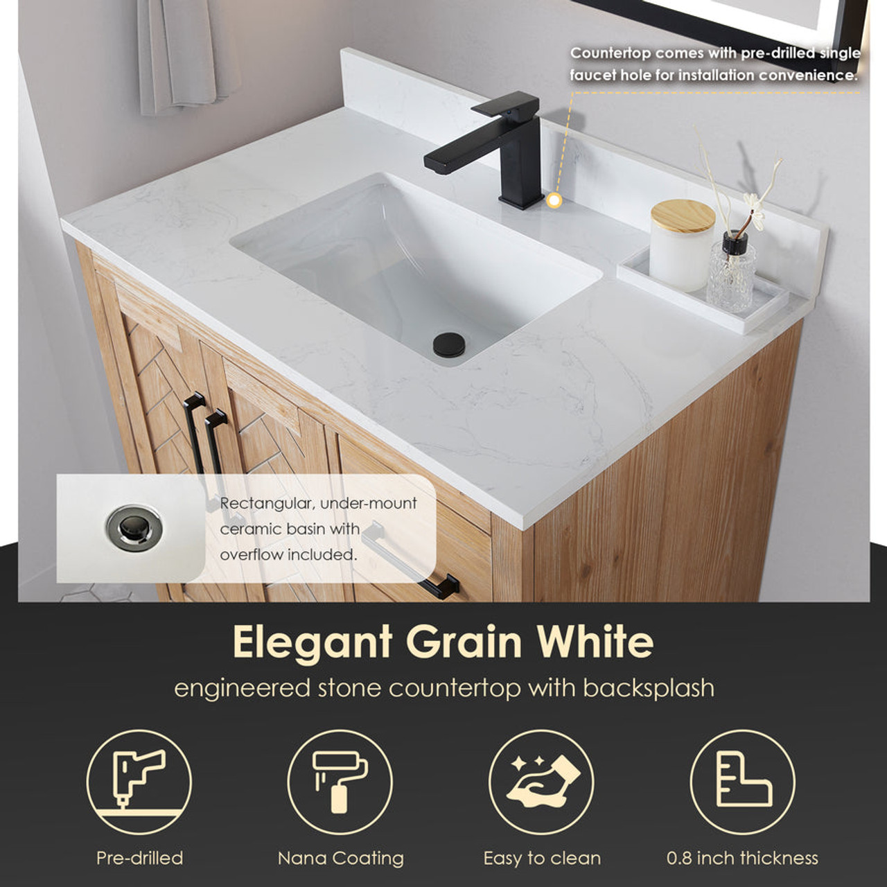 Anais 36" Single Bathroom Vanity in Light Brown with Engineered Stone Countertop