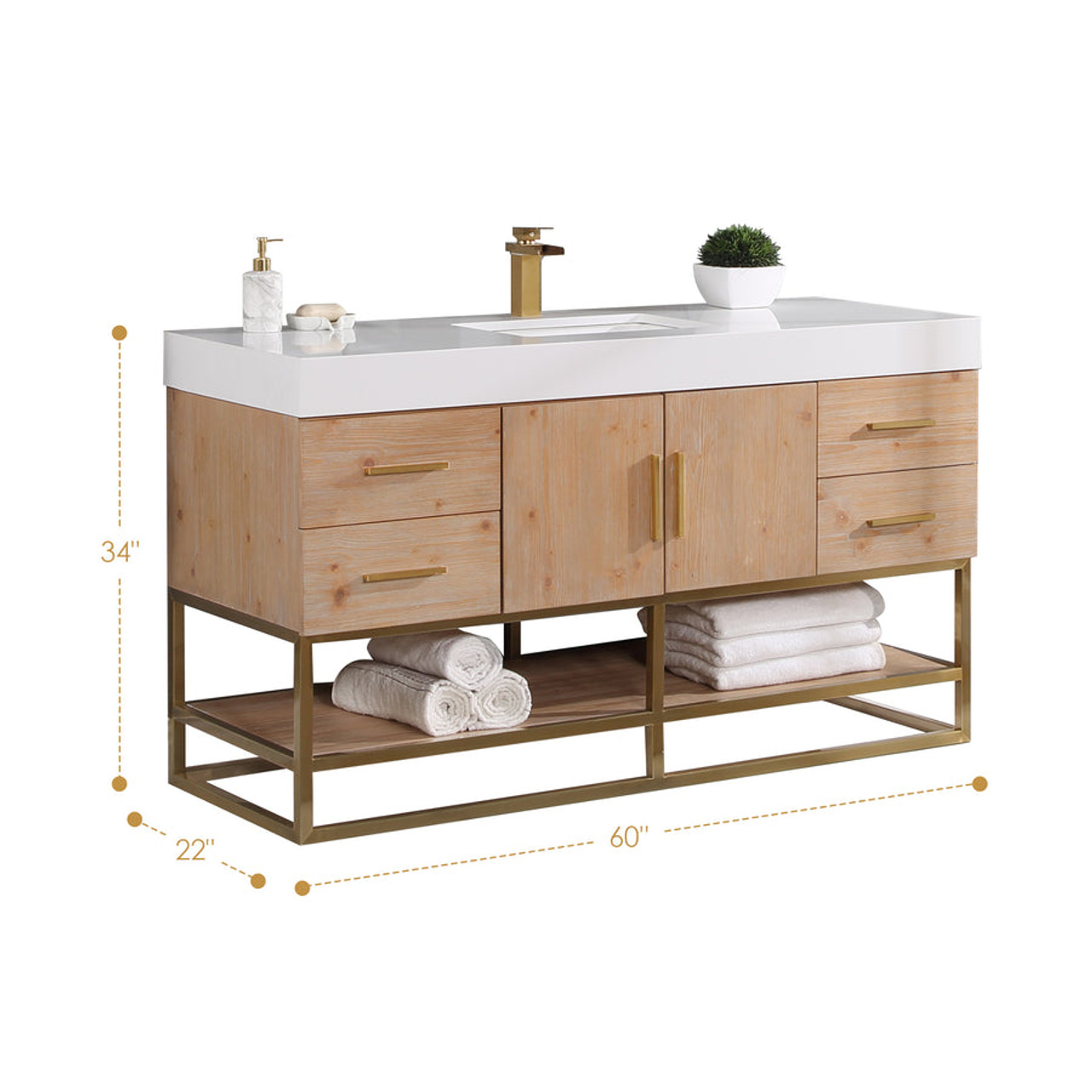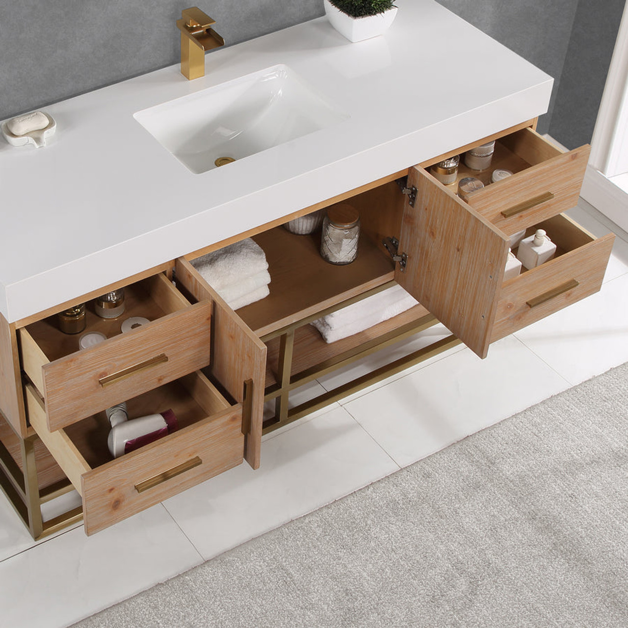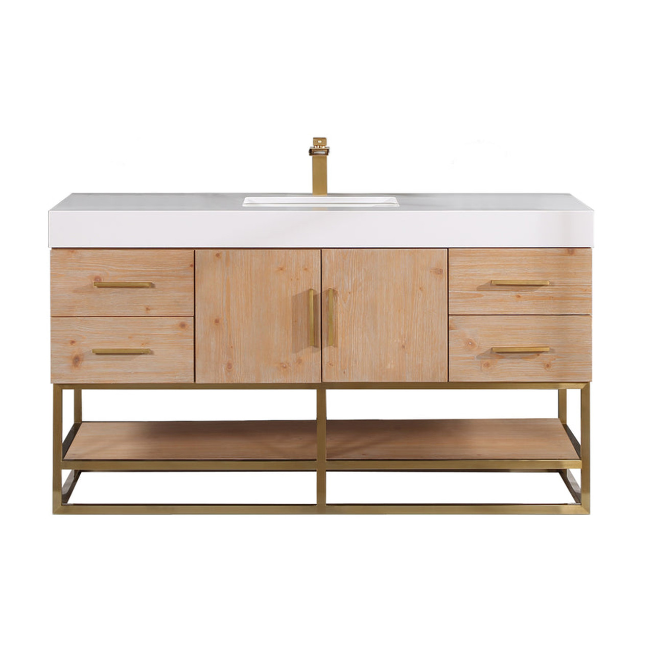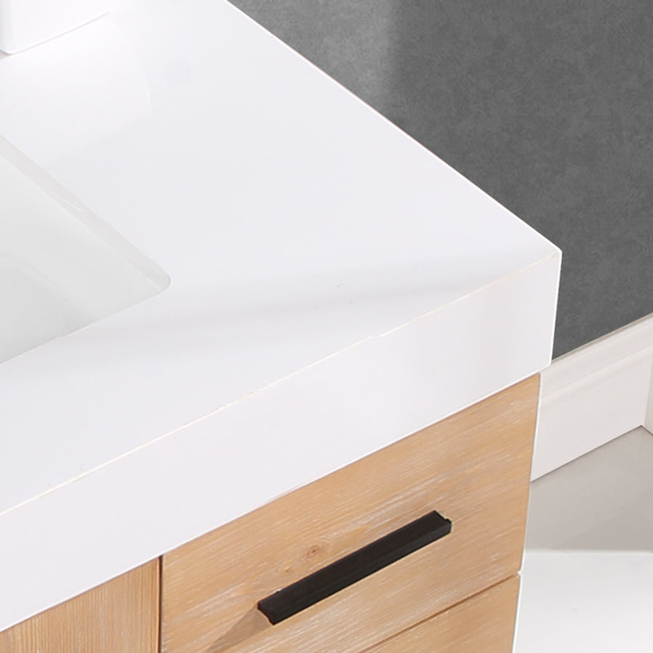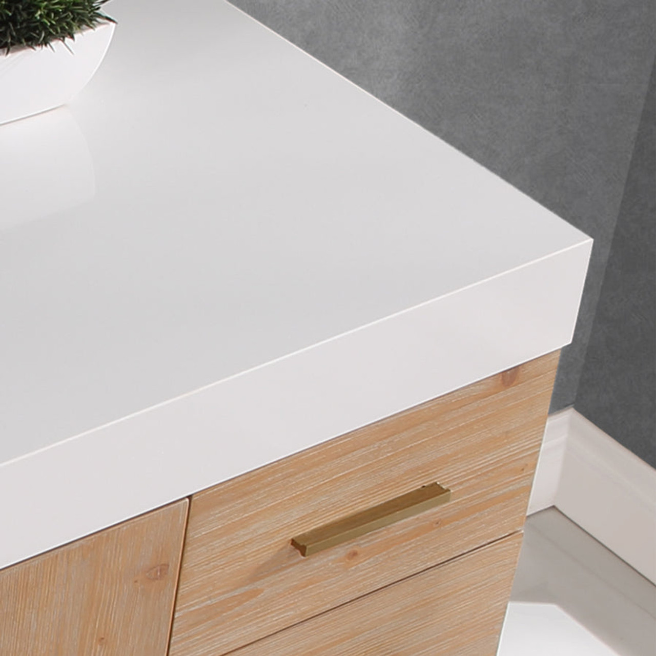 Bianco Single Bathroom Vanity in Light Brown with White Composite Stone Countertop