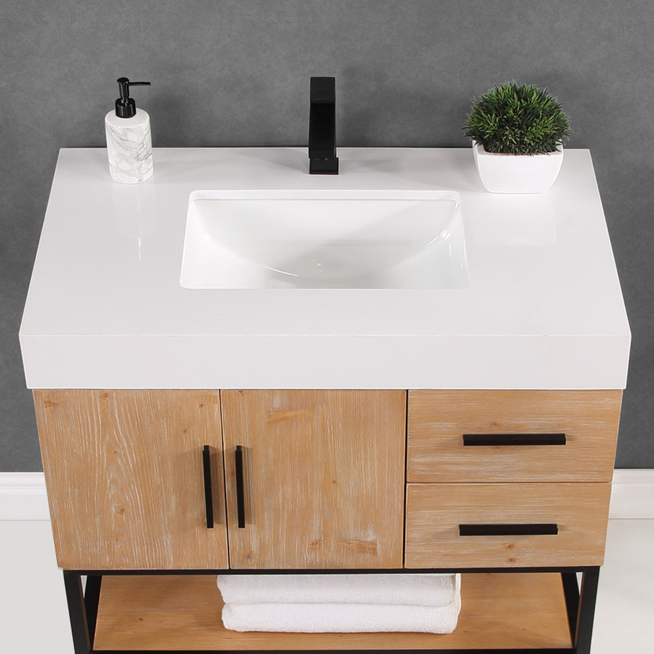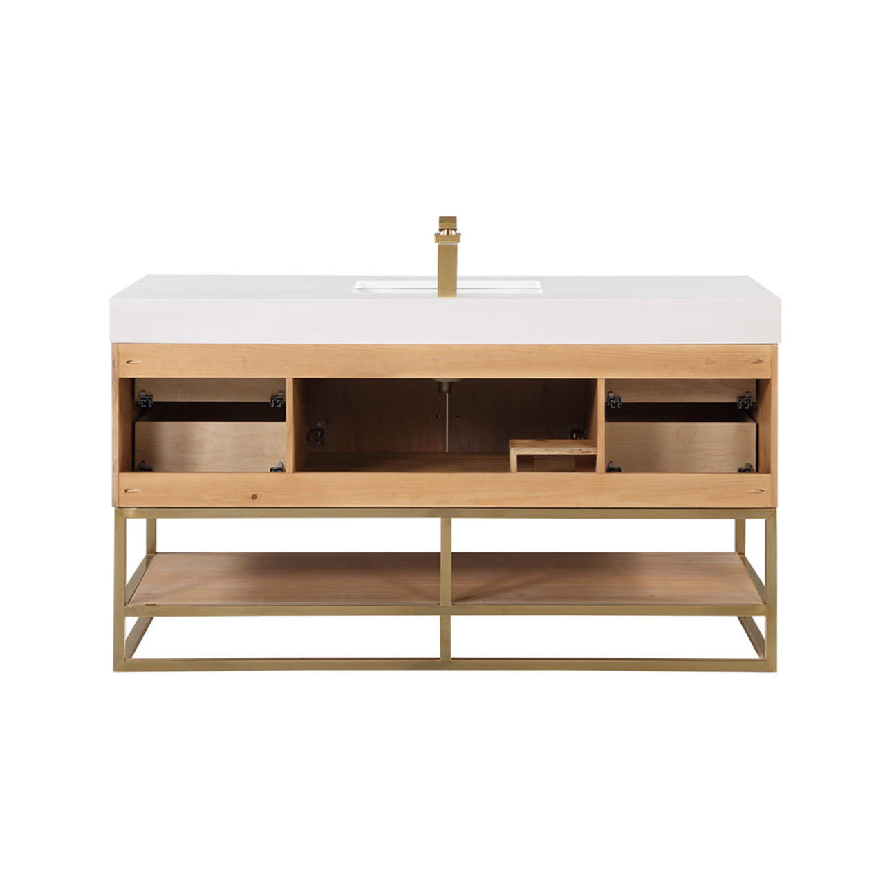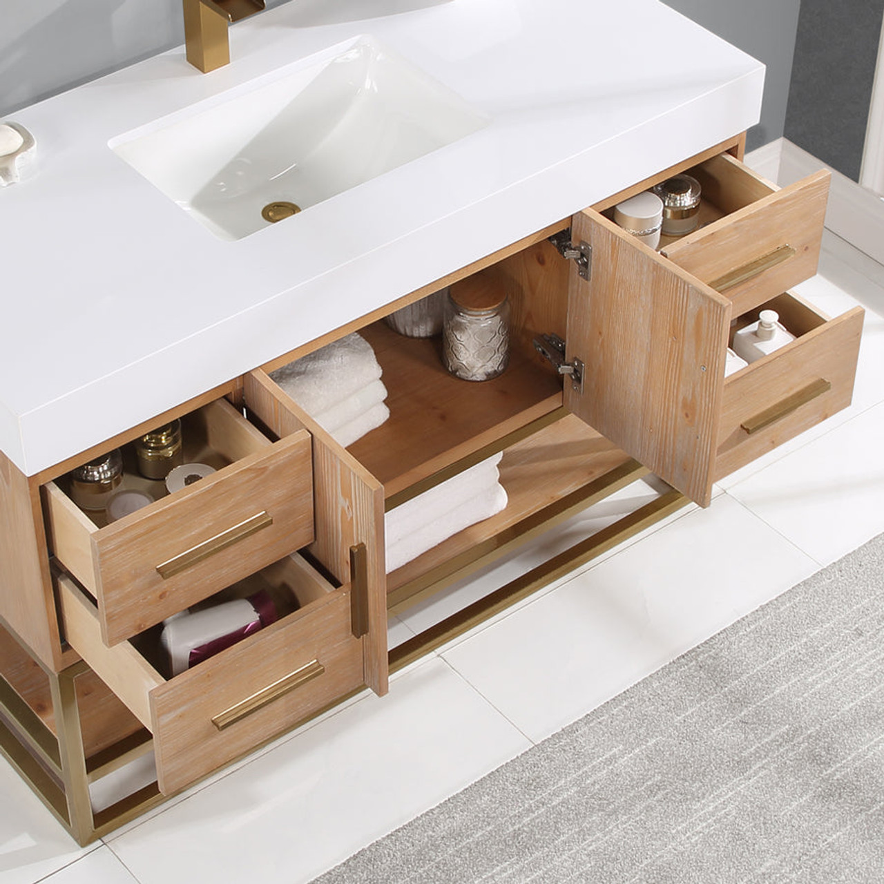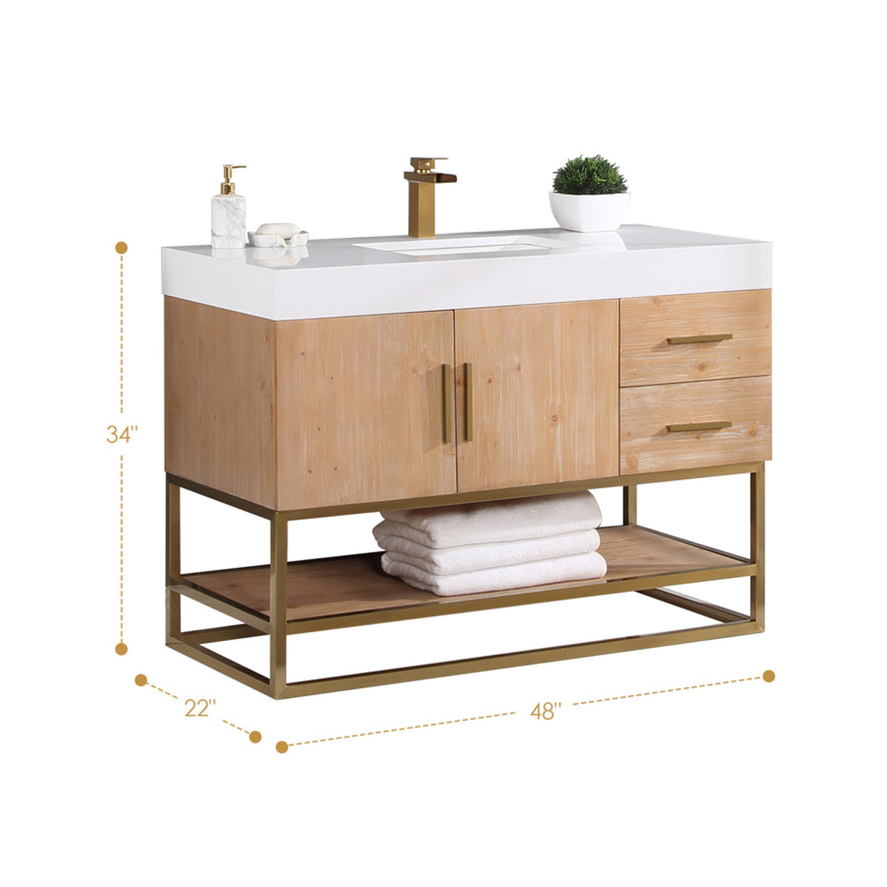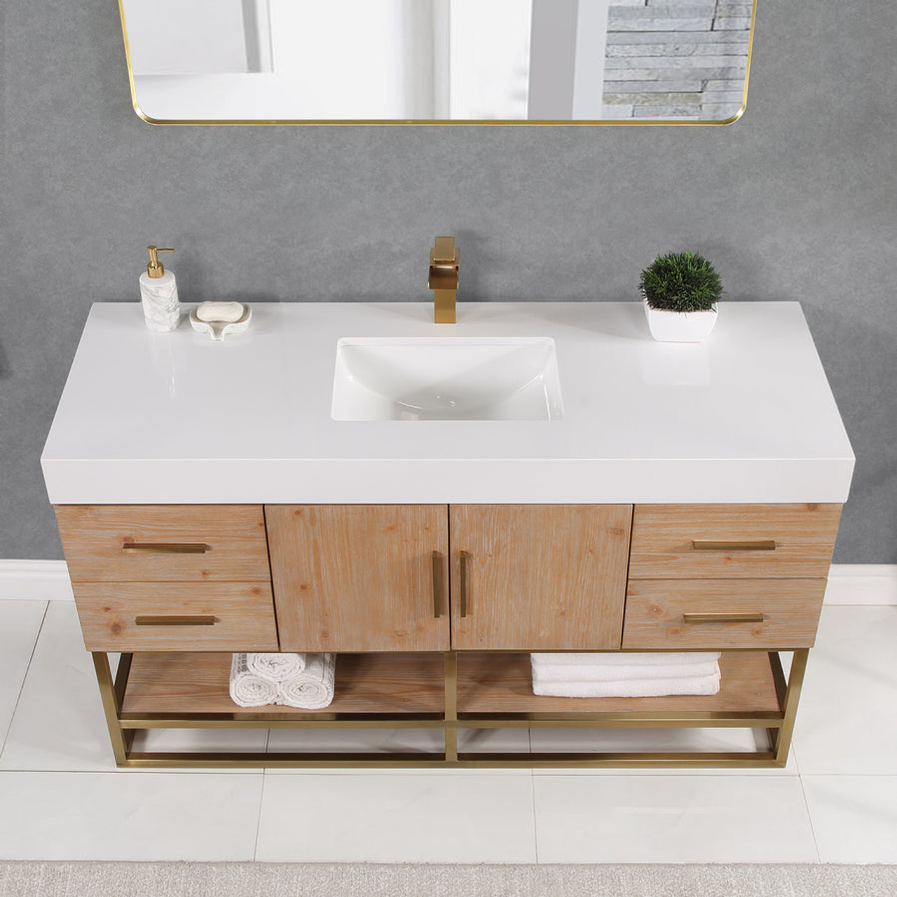 Bianco Single Bathroom Vanity in Light Brown with White Composite Stone Countertop