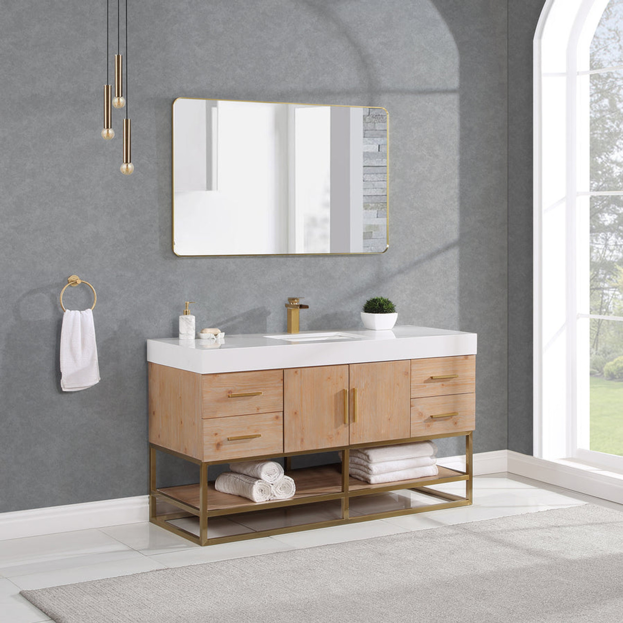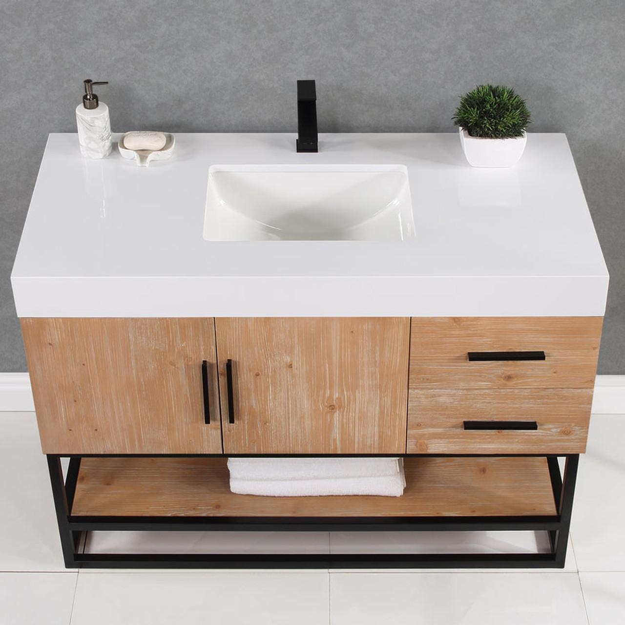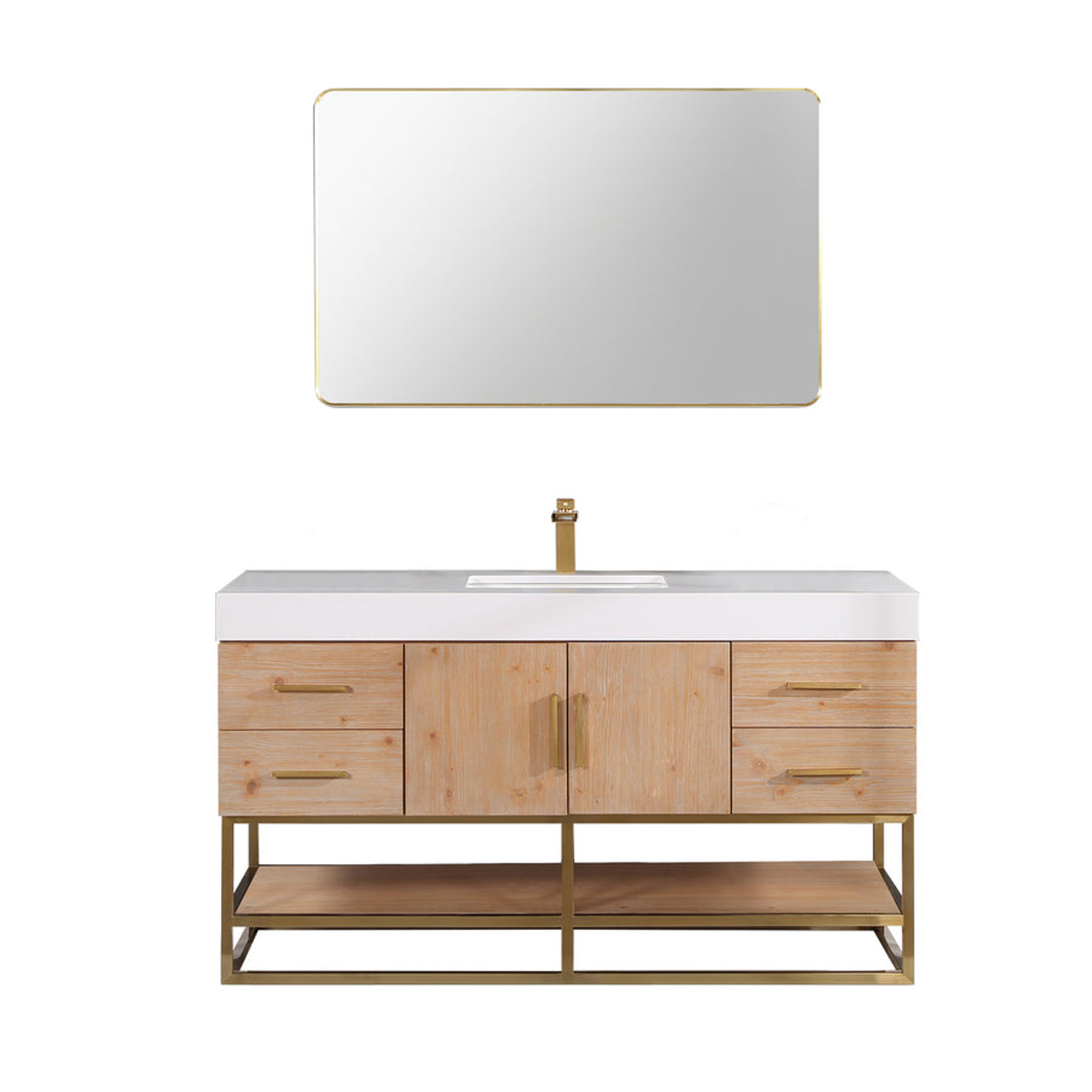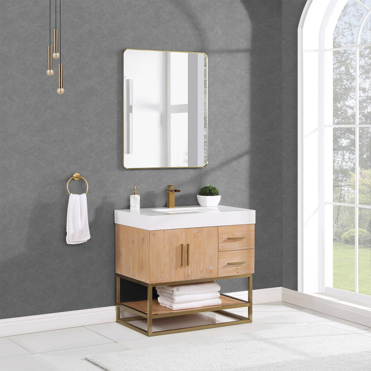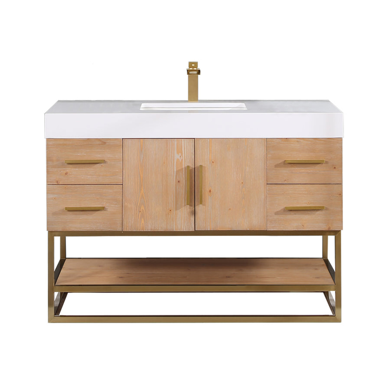 Bianco Single Bathroom Vanity in Light Brown with White Composite Stone Countertop