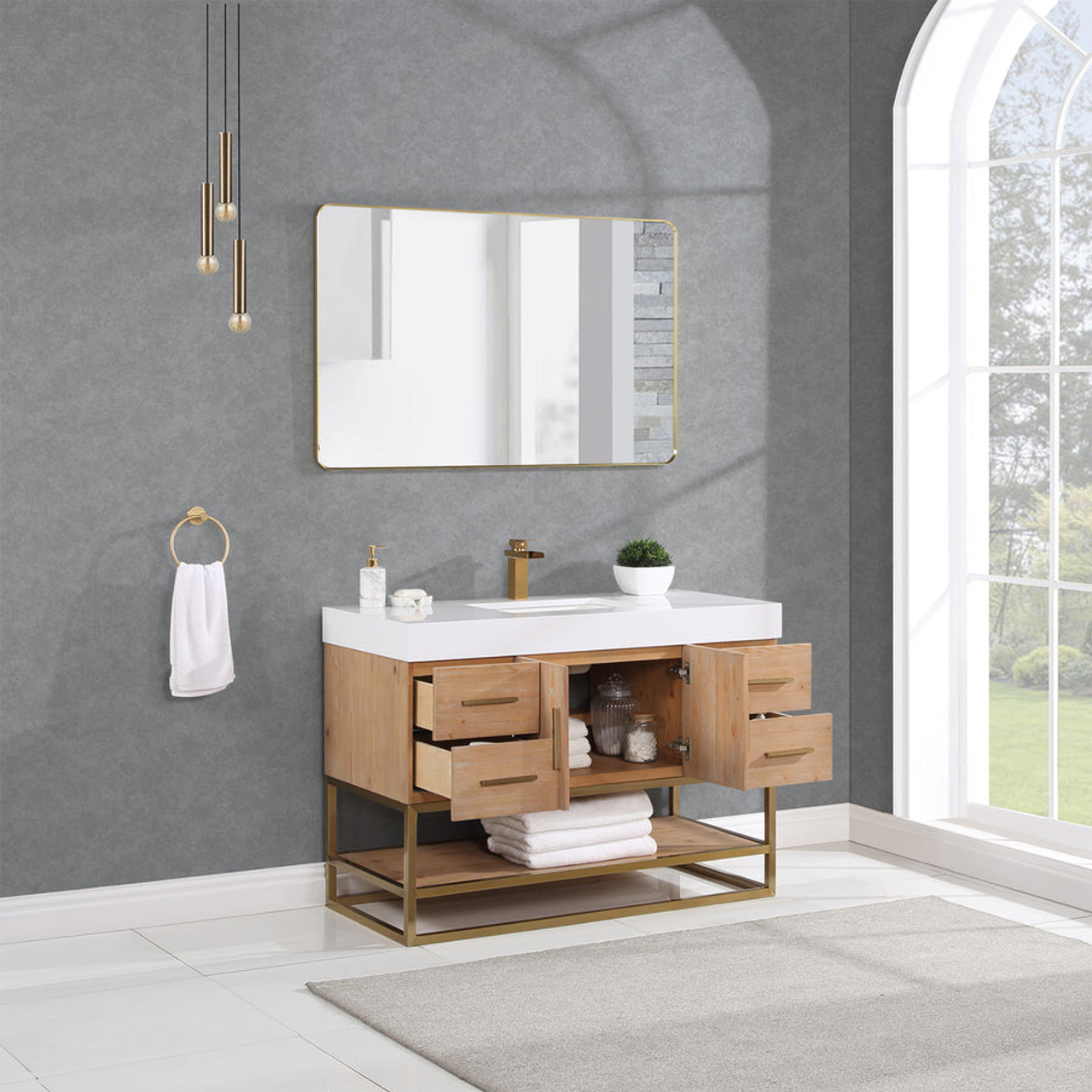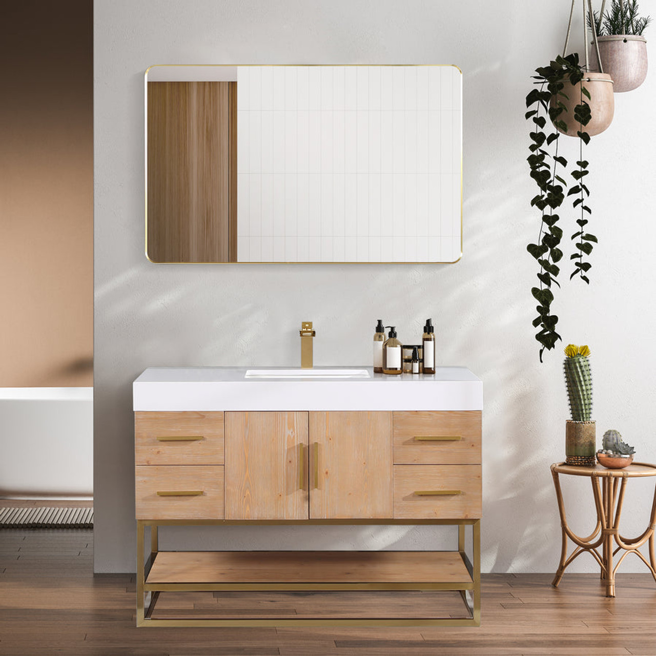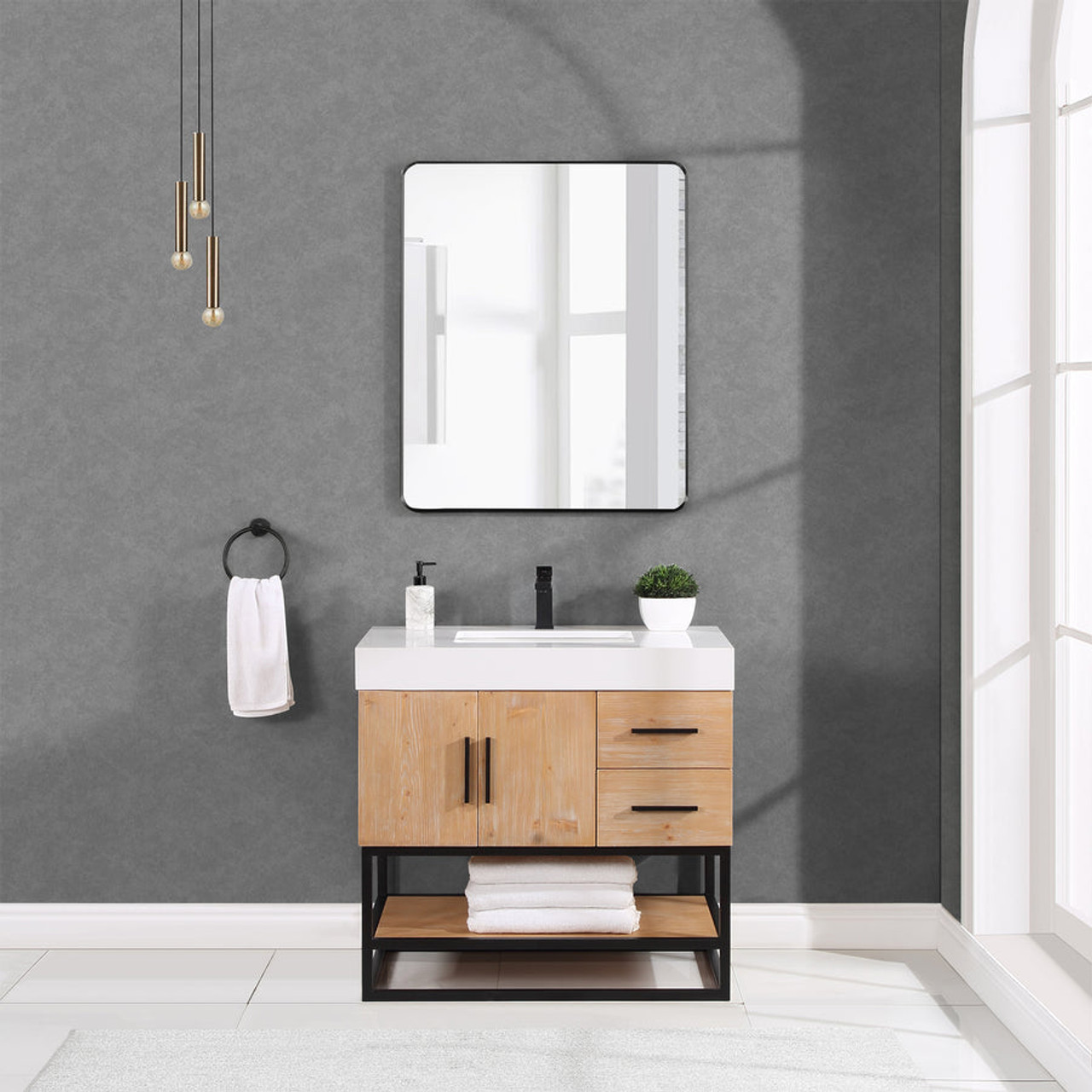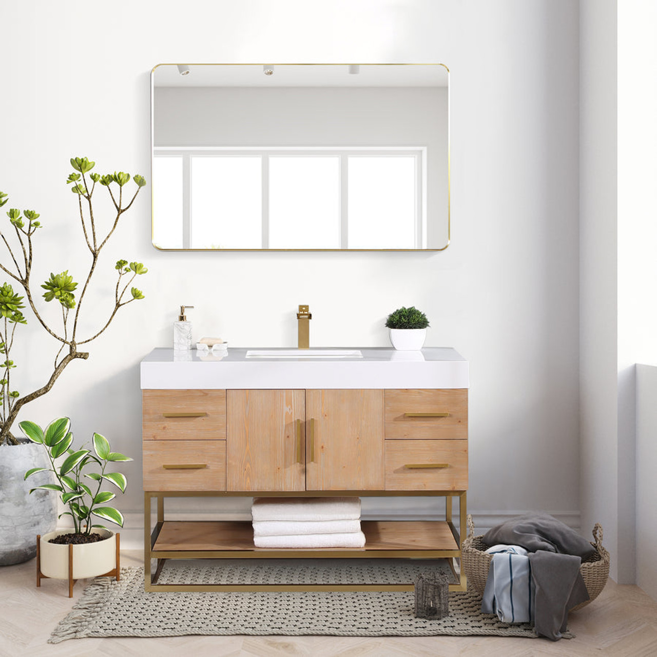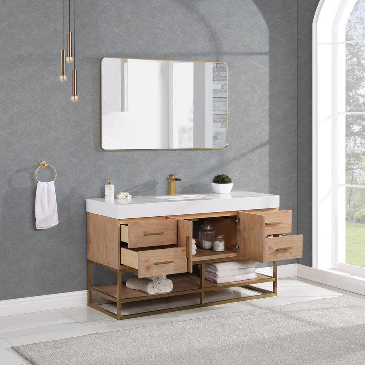Bianco Single Bathroom Vanity in Light Brown with White Composite Stone Countertop