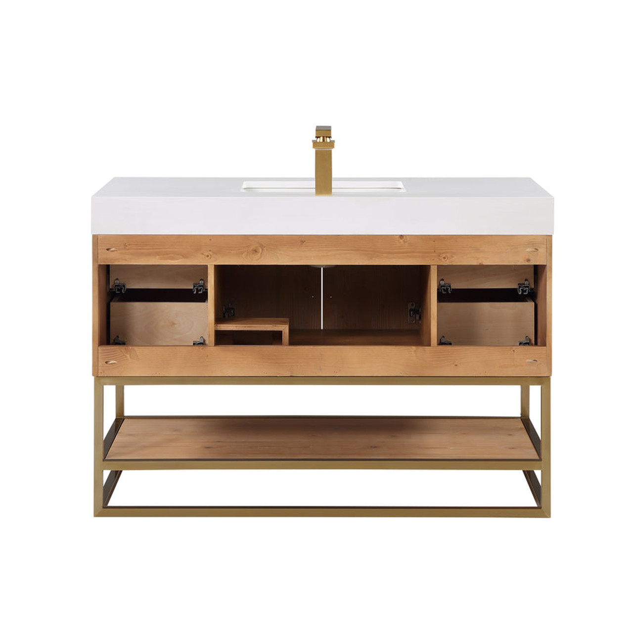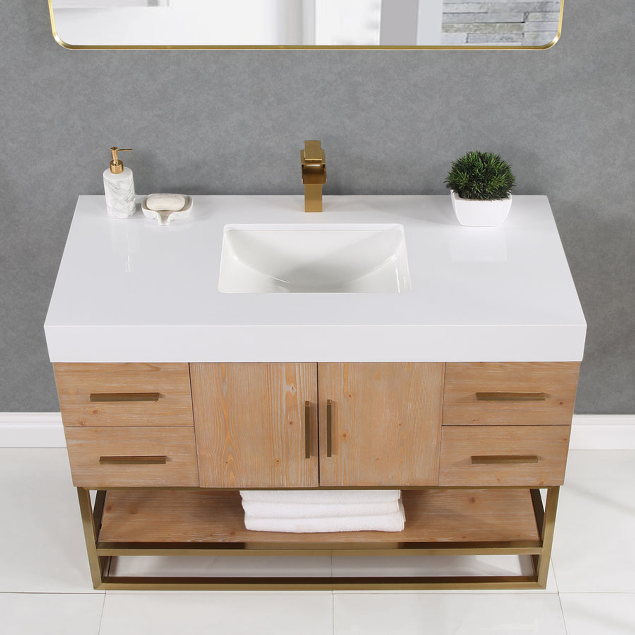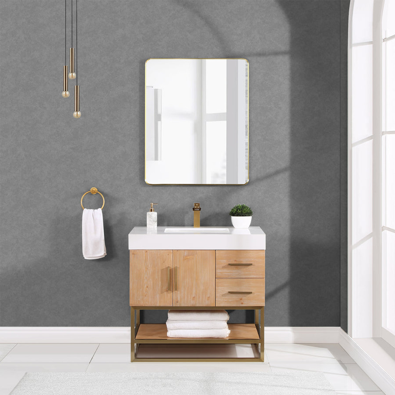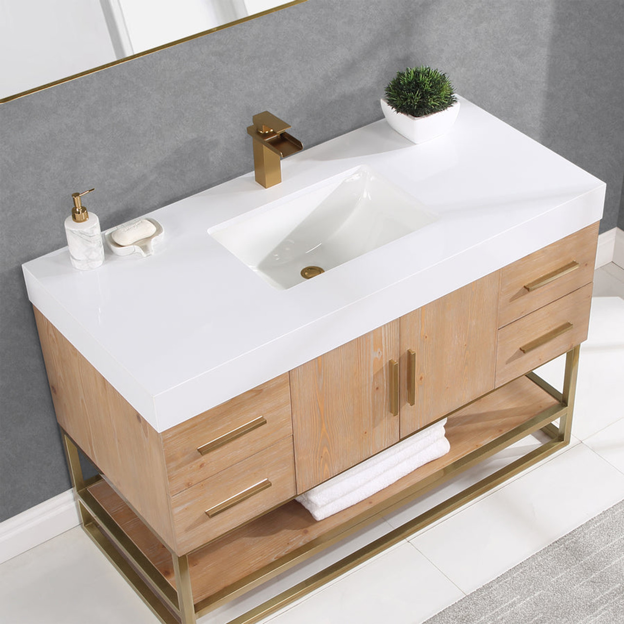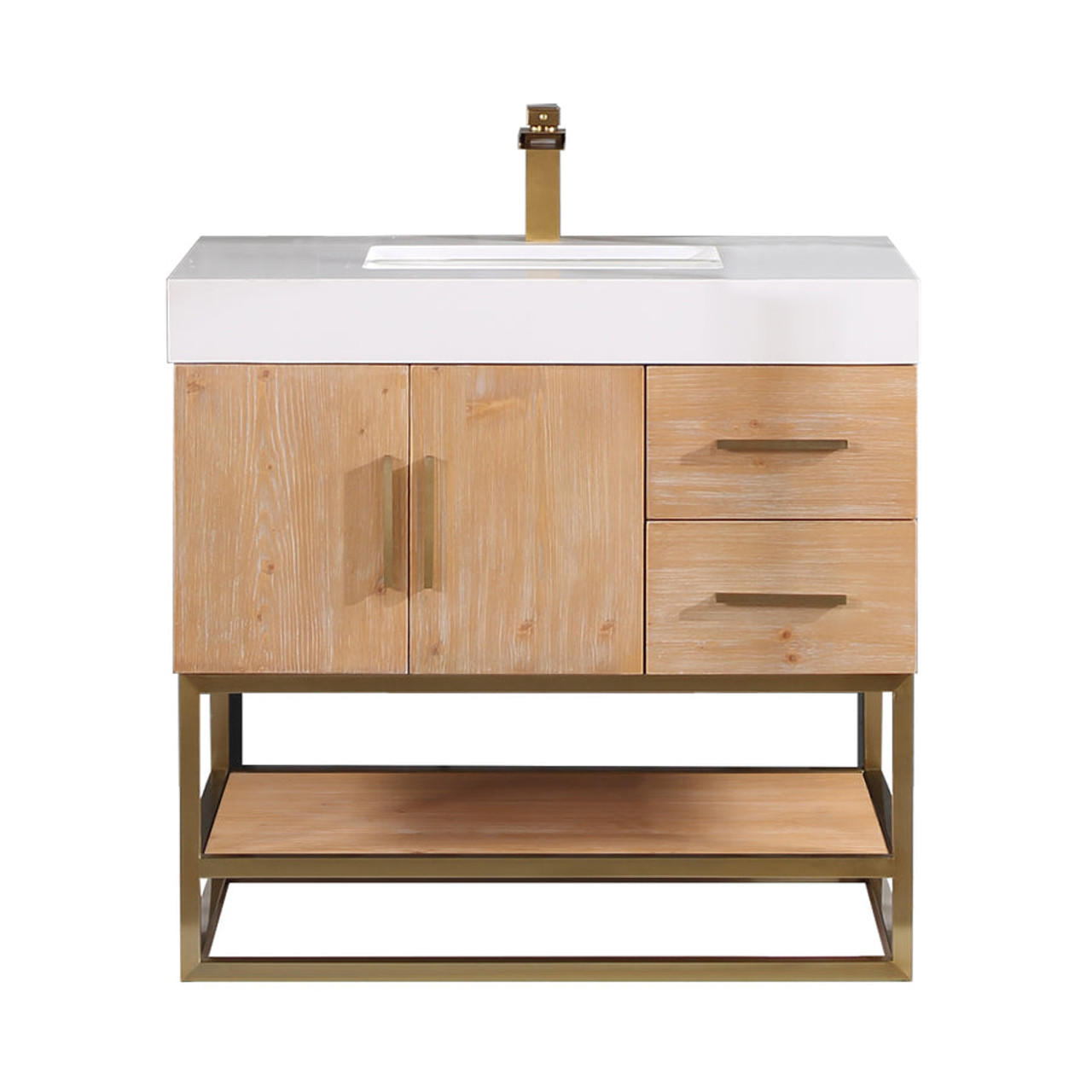 Altair Bianco Single Bathroom Vanity in Light Brown with White Composite Stone Countertop