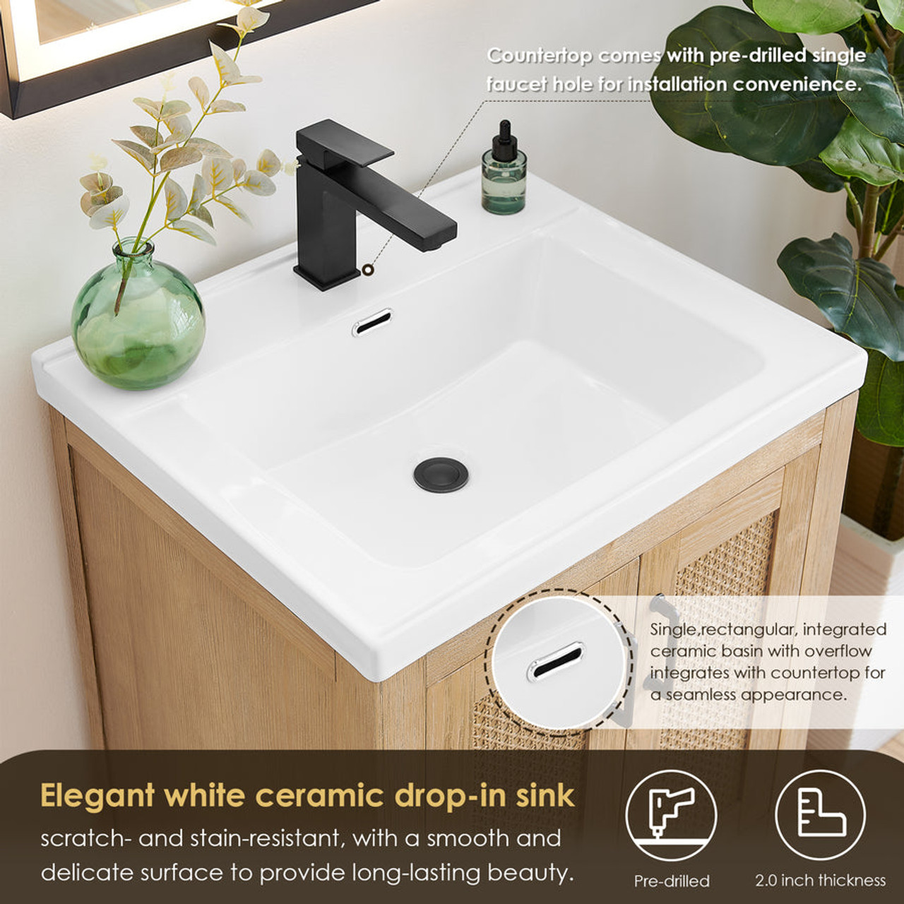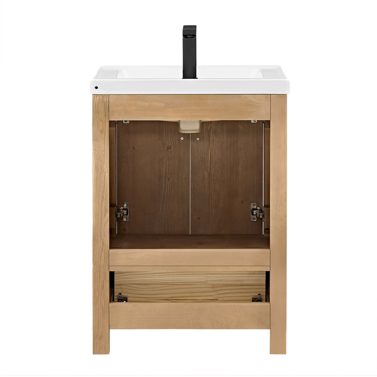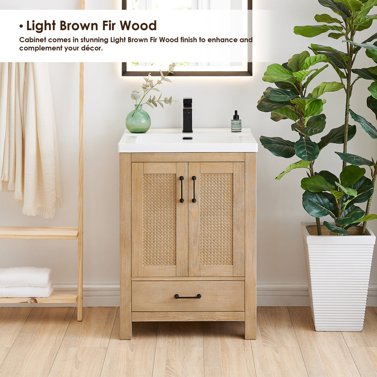 Bondi 24" Single Bathroom Vanity in Light Brown with White Ceramic Drop-in Sink