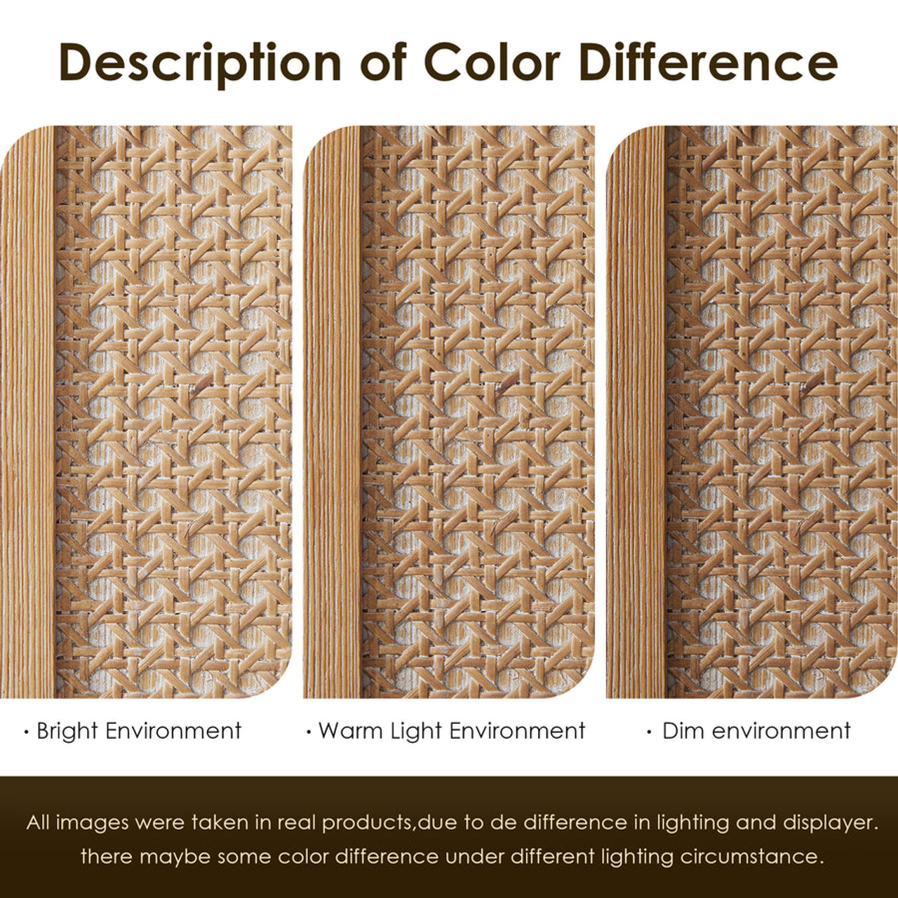 - 2 soft-closing doors feature finely handcrafted, natural rattan-woven fronts framed with distressed solid wood