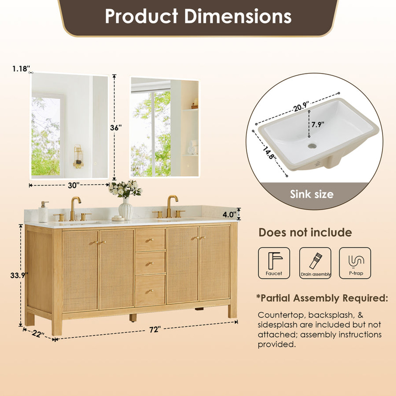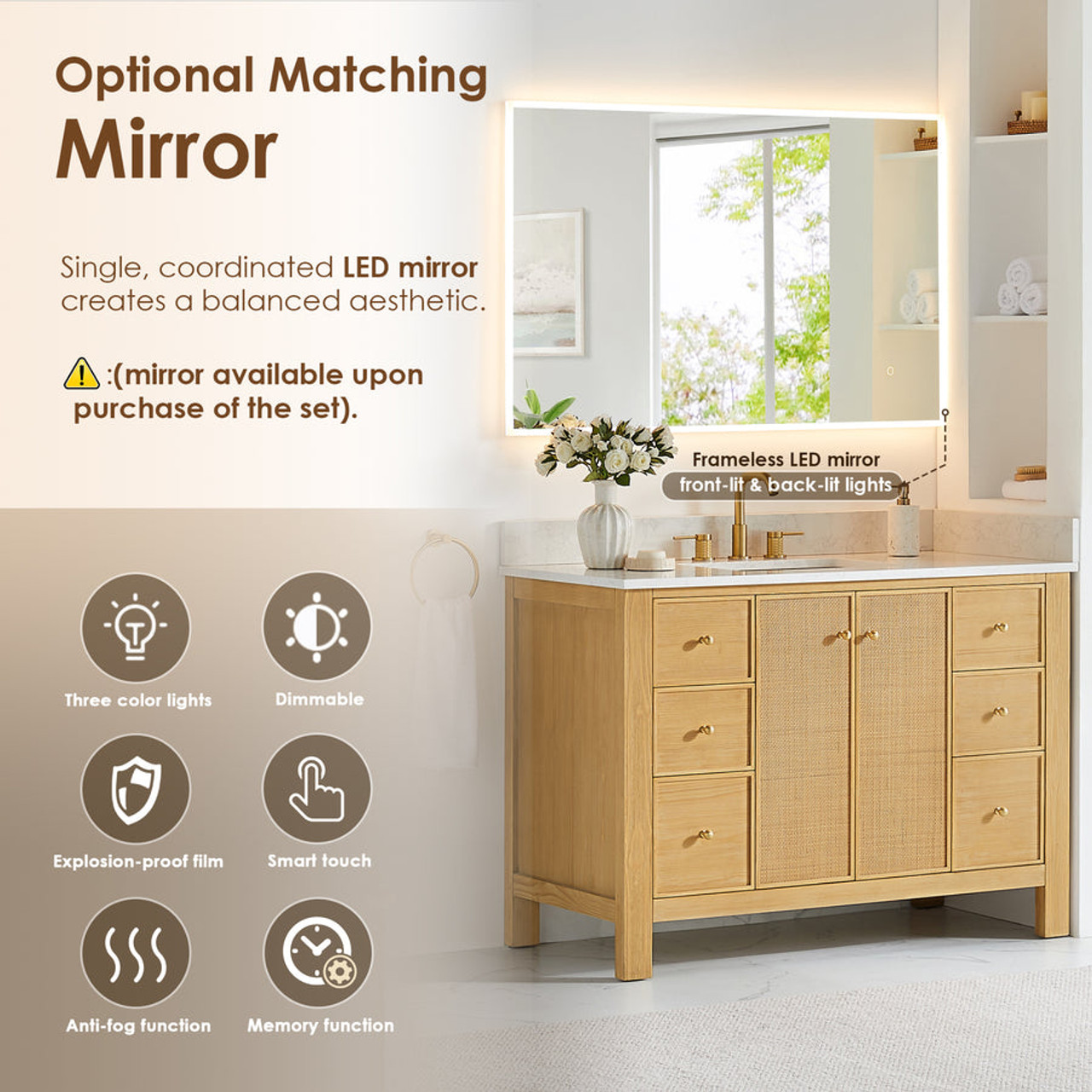 - Optional matching mirror(s): Single (36"/48")/Double (60"/72"), coordinated LED mirror creates a balanced aesthetic (mirror available upon purchase of the set).