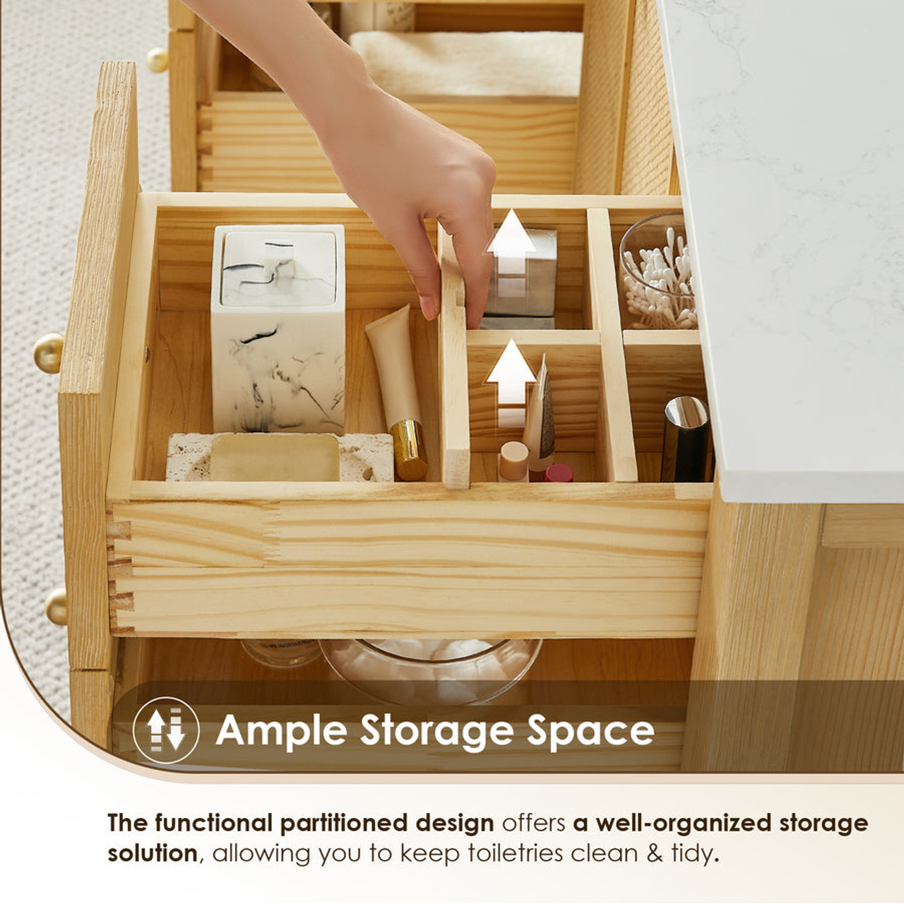- Ample storage space: The functional partitioned design offers a well-organized storage solution, allowing you to keep toiletries and other essentials neatly arranged and out of sight.