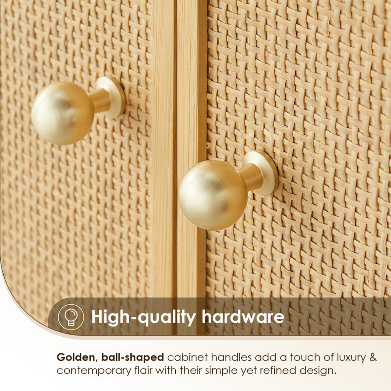 - High-quality hardware: Golden, ball-shaped cabinet handles add a touch of luxury and contemporary flair with their simple yet refined design.
