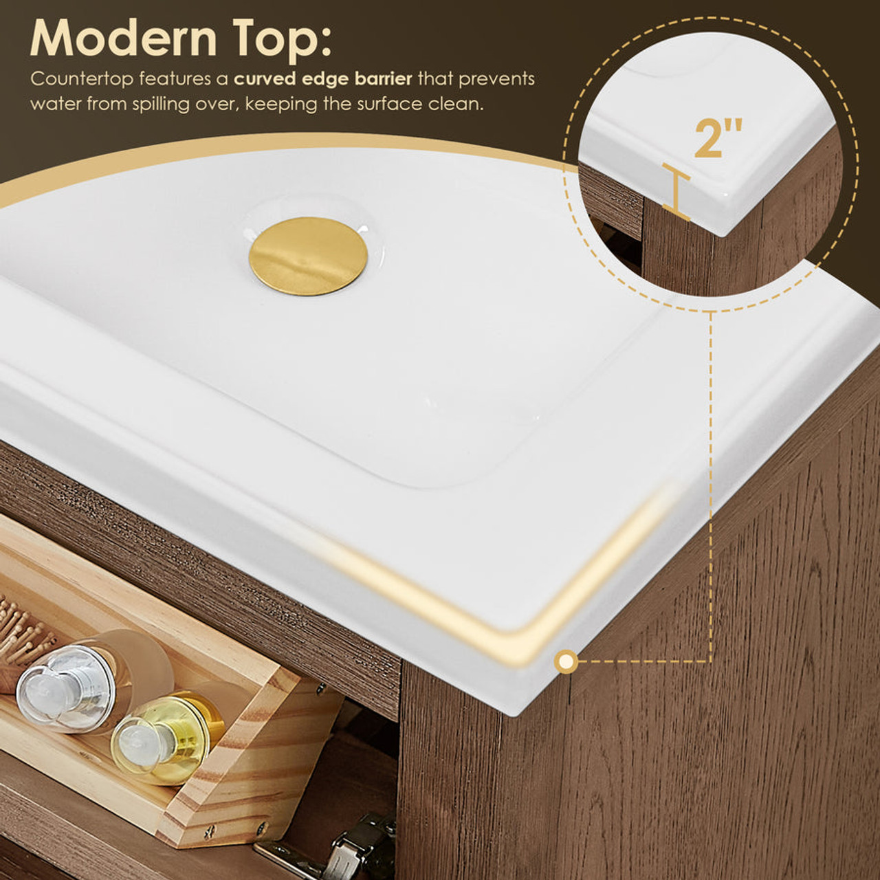 - Modern Top: Countertop features a curved edge barrier that prevents water from spilling over, keeping the surface clean.