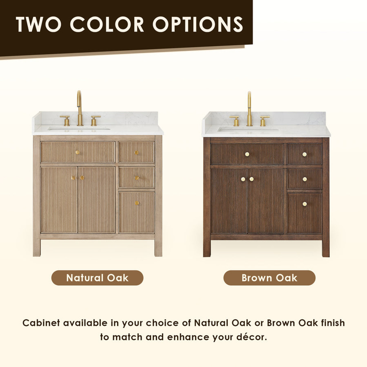 Cerrito 36" Single Bathroom Vanity with Grain White Engineered Stone Countertop