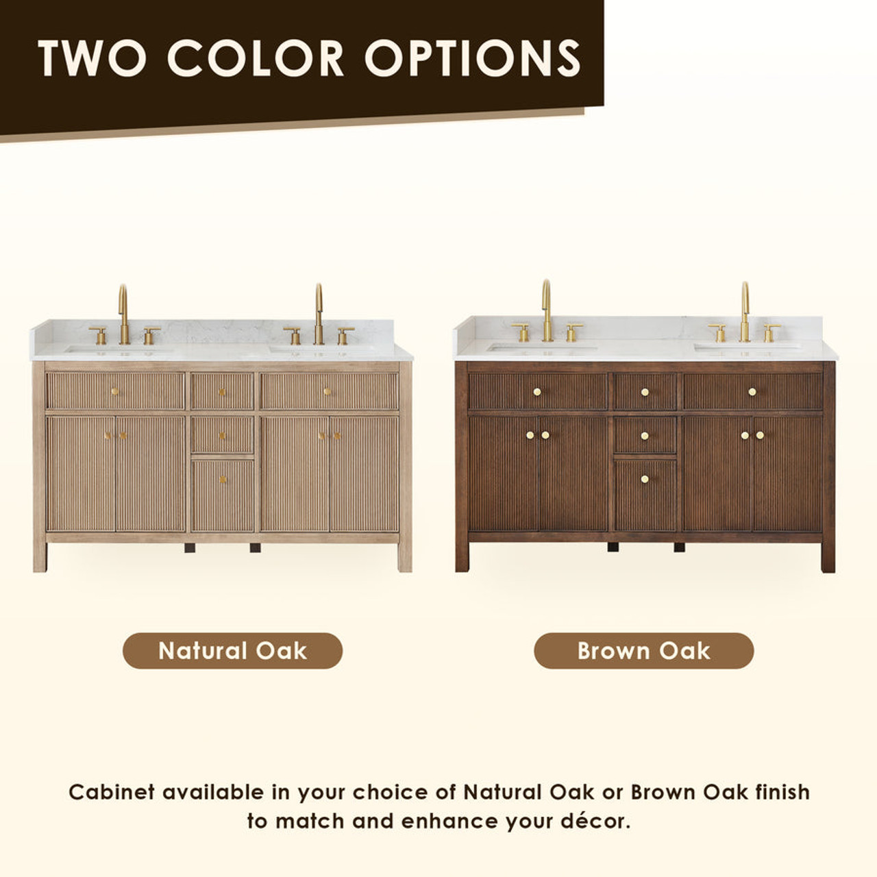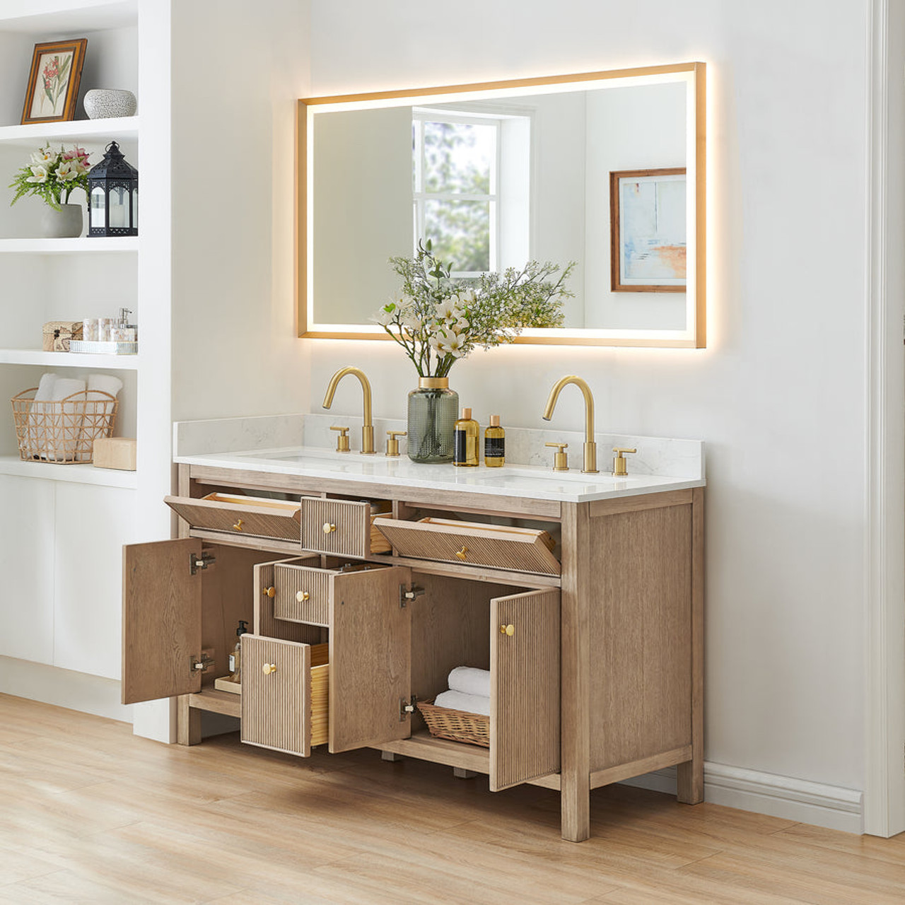 Cerrito 60" Double Bathroom Vanity with Grain White Engineered Stone Countertop