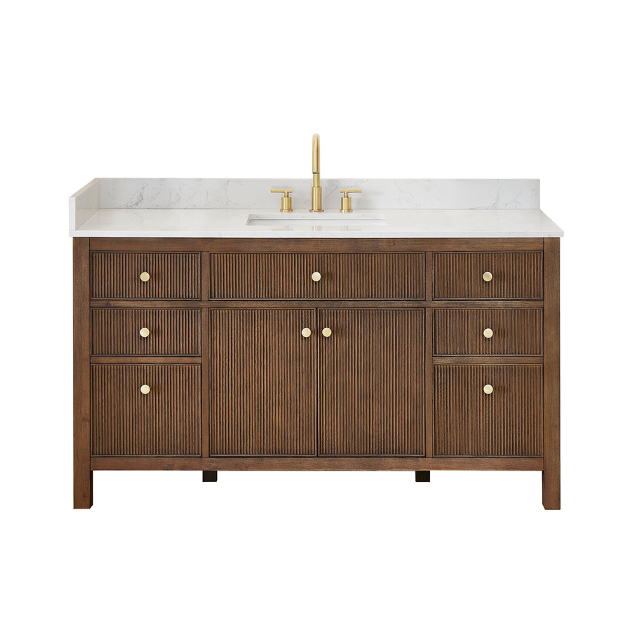 Altair Cerrito 60" Single Bathroom Vanity with Grain White Engineered Stone Countertop