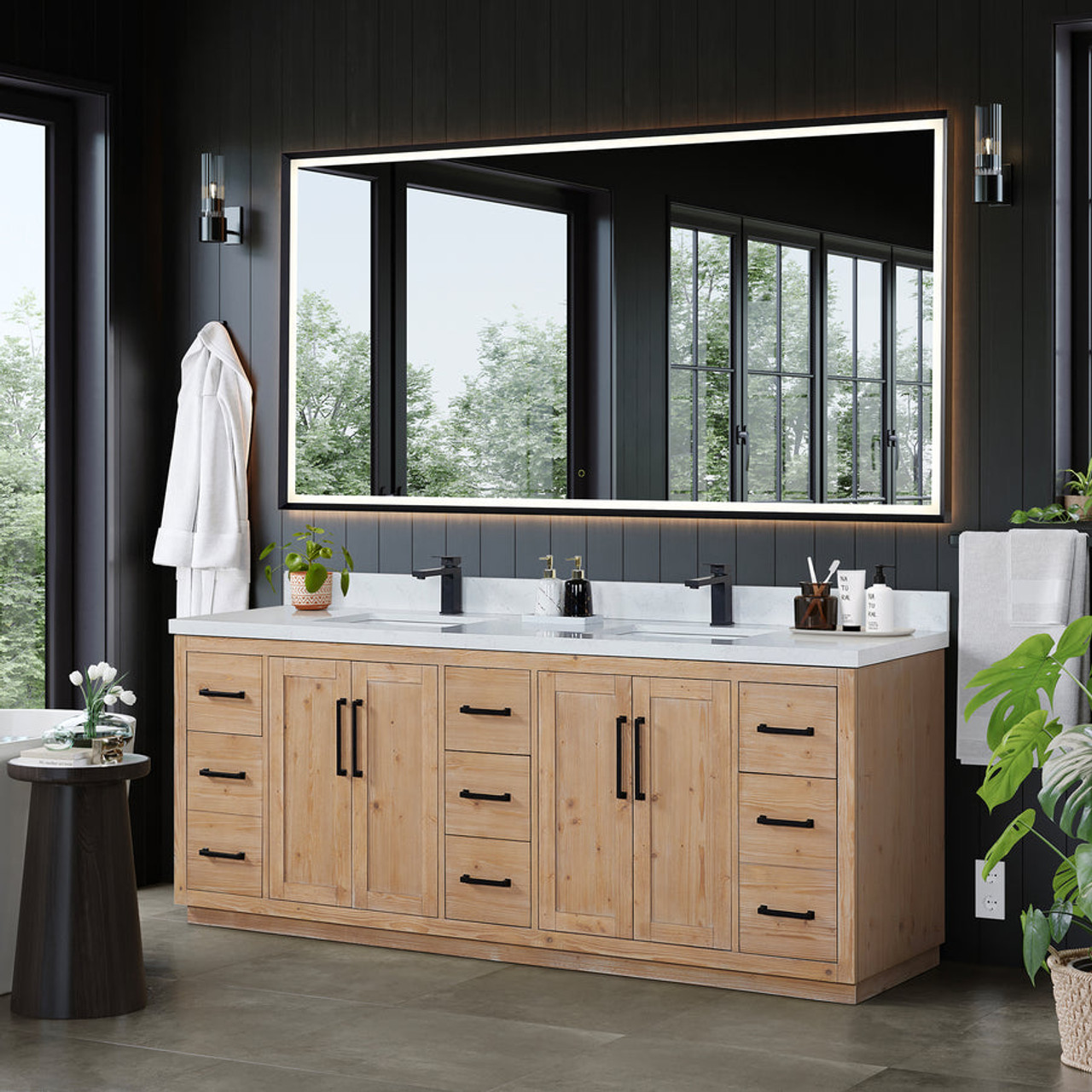 Altair Cicero 84" Double Bathroom Vanity in Light Brown with Engineered Stone Countertop