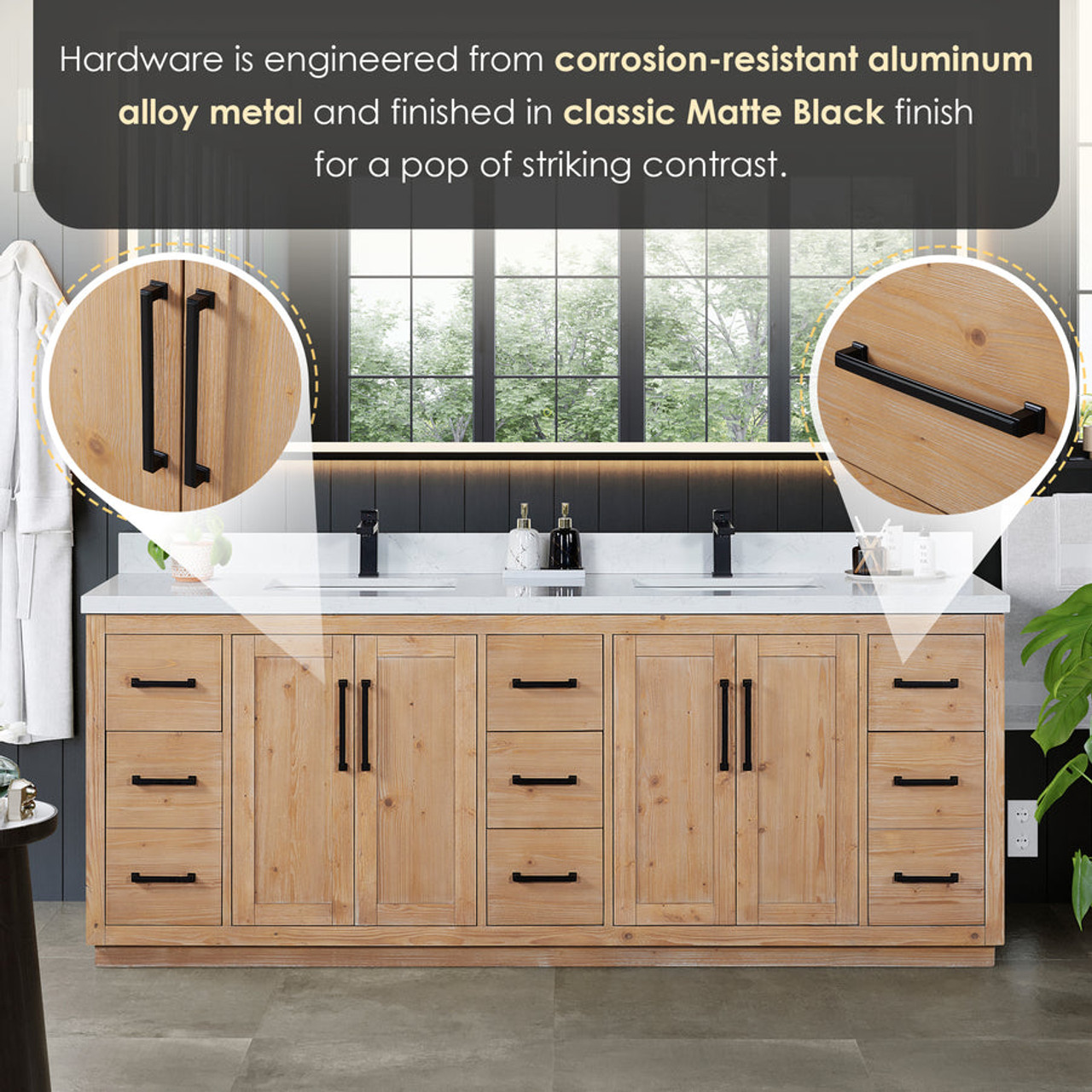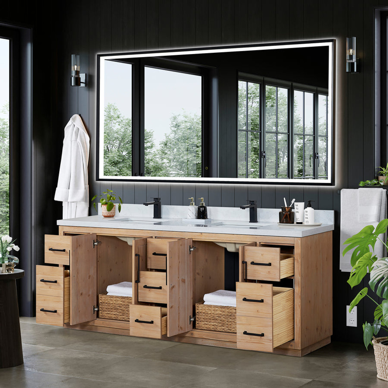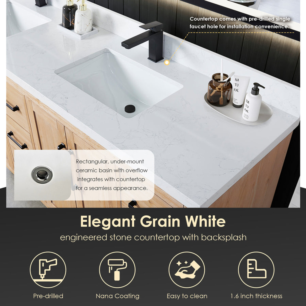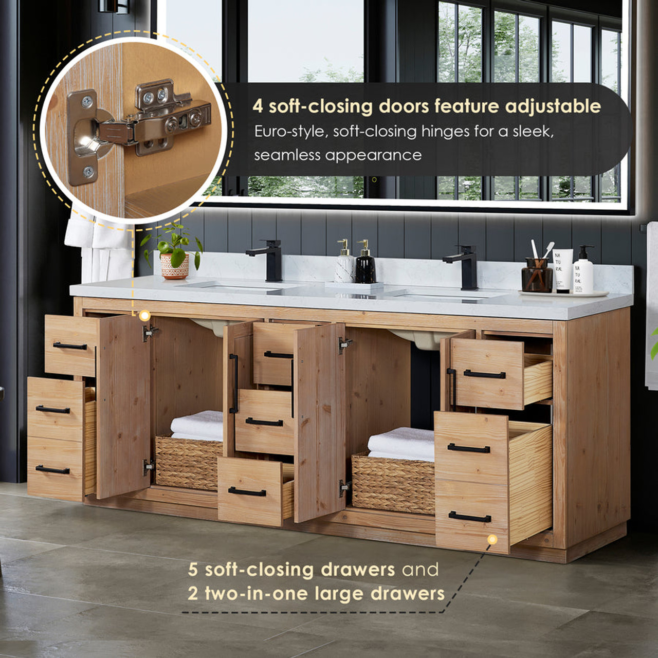 Cicero 84" Double Bathroom Vanity in Light Brown with Engineered Stone Countertop