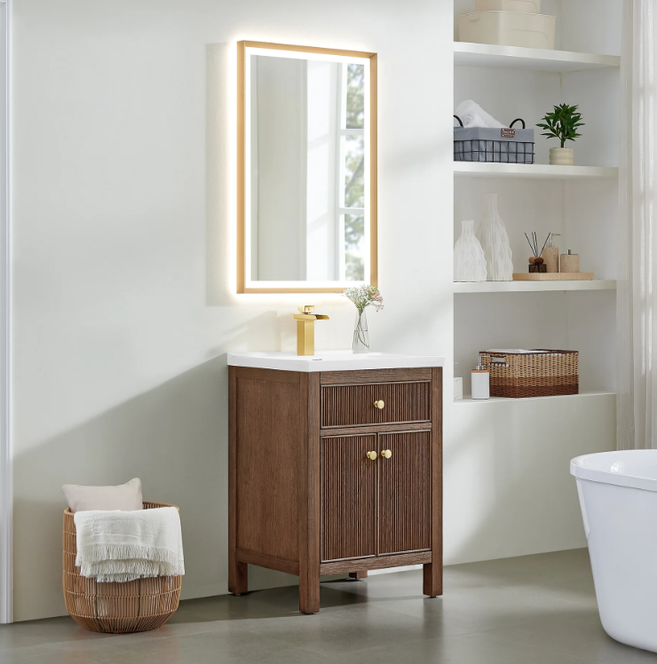 Cielo 24" Vanity With Ceramic Top - Brown Oak