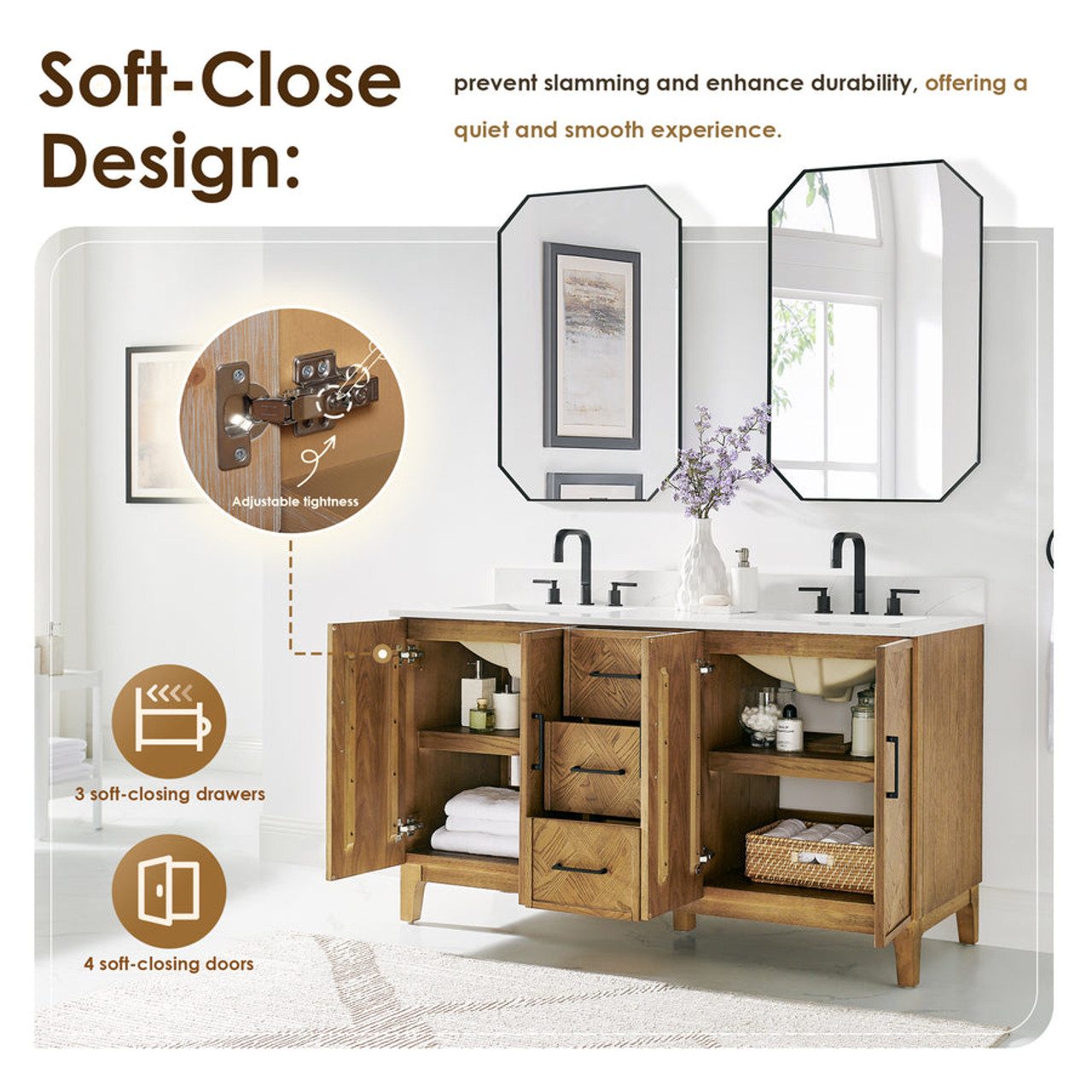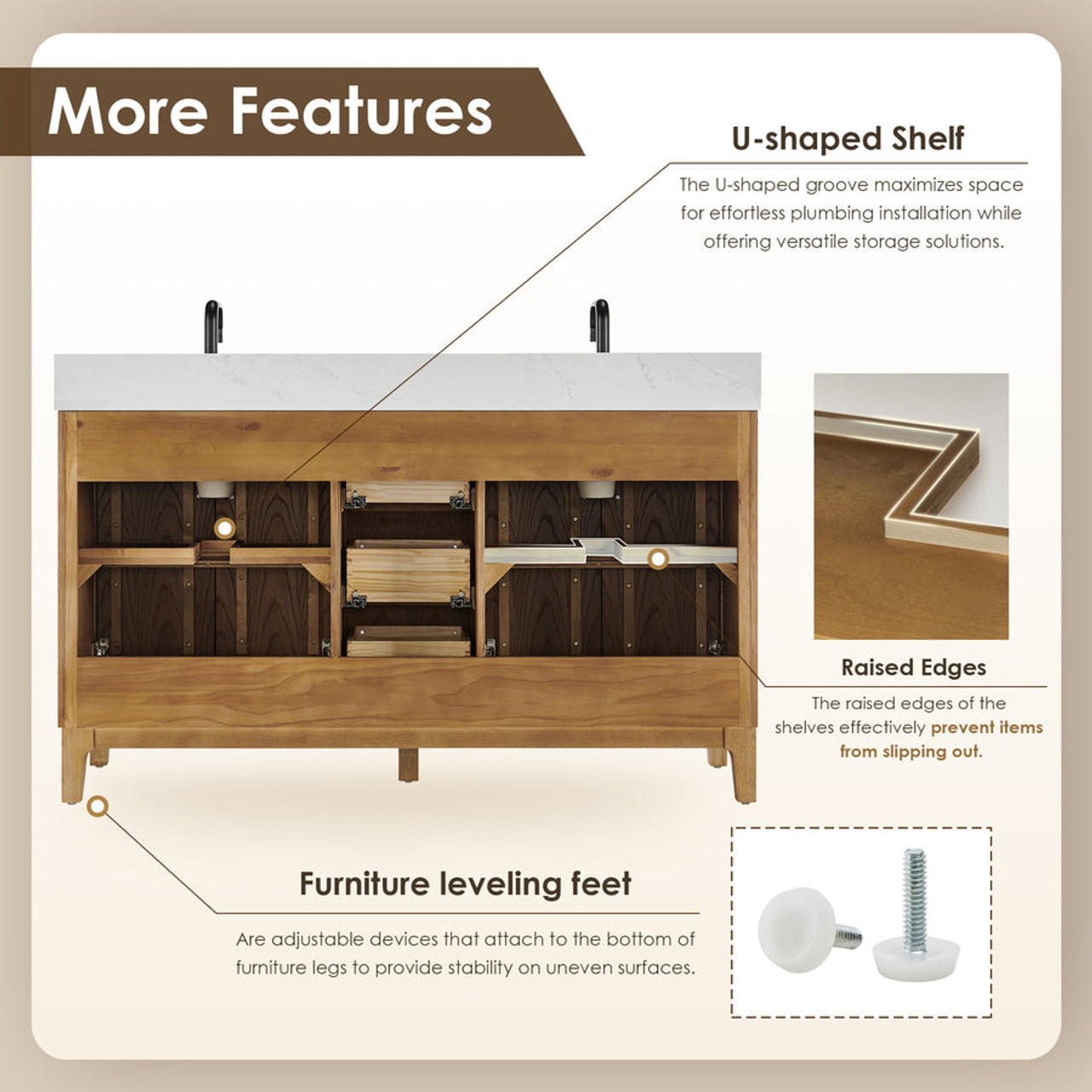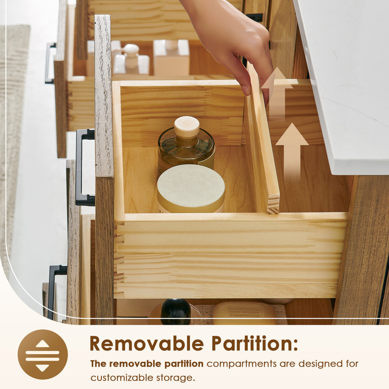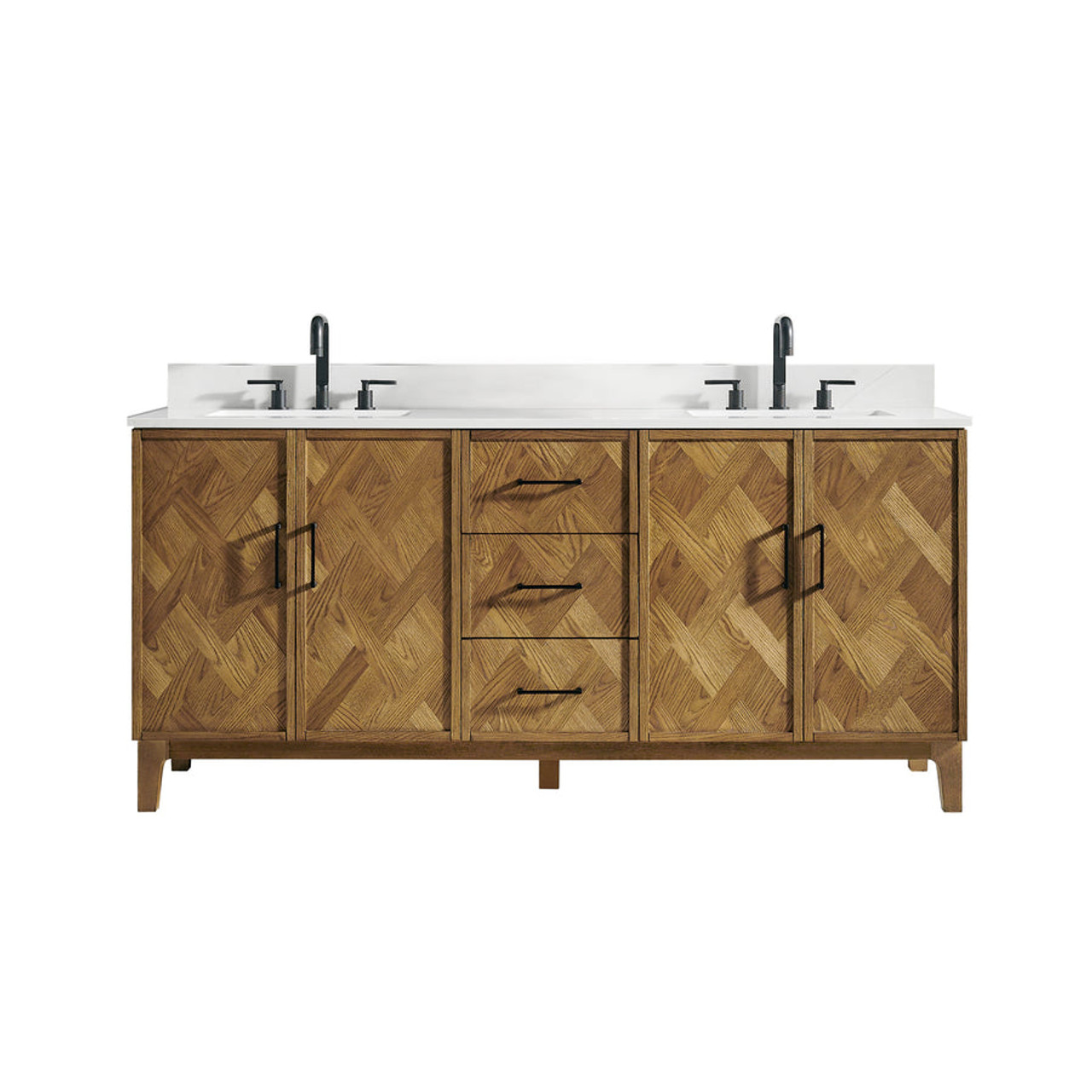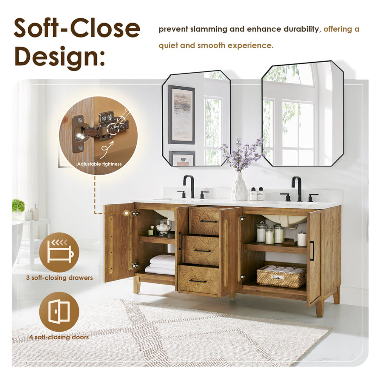 Transform your bathroom into a sanctuary of timeless elegance with our vintage-inspired vanity. Featuring exquisite herring bone striped brown detailing, soft-closing dovetailed drawers, and a sleek quartz countertop, it masterfully blends functionality with artistry. The sturdy wood base adds a touch of modern flair, while the weathered brown finish whispers rustic charm, creating a perfect balance of sophistication and warmth. It’s more than a vanity—it’s a statement of refined living. Redefine your bathroom, one detail at a time.