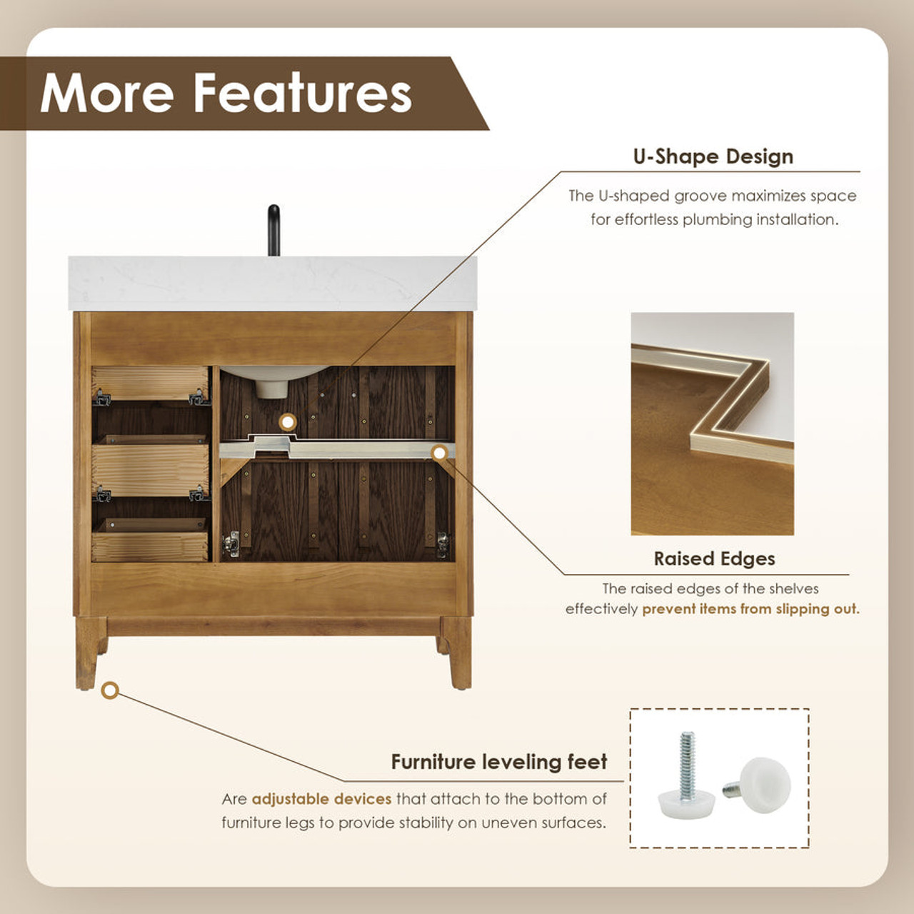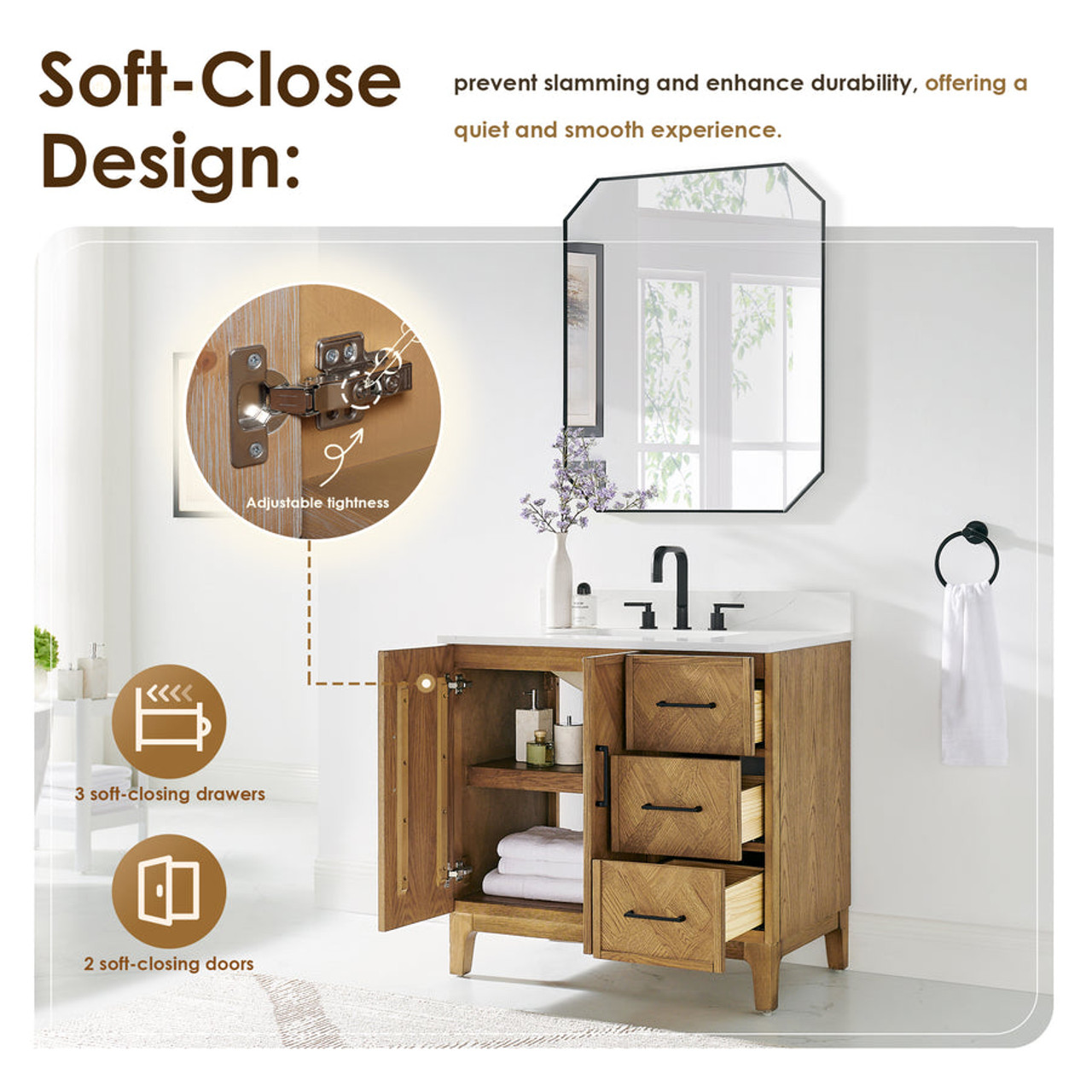 - 36 inch:3 dovetailed soft-closing drawers and 2 soft-closing doors prevent slamming and enhance durability, offering a quiet and smooth experience.