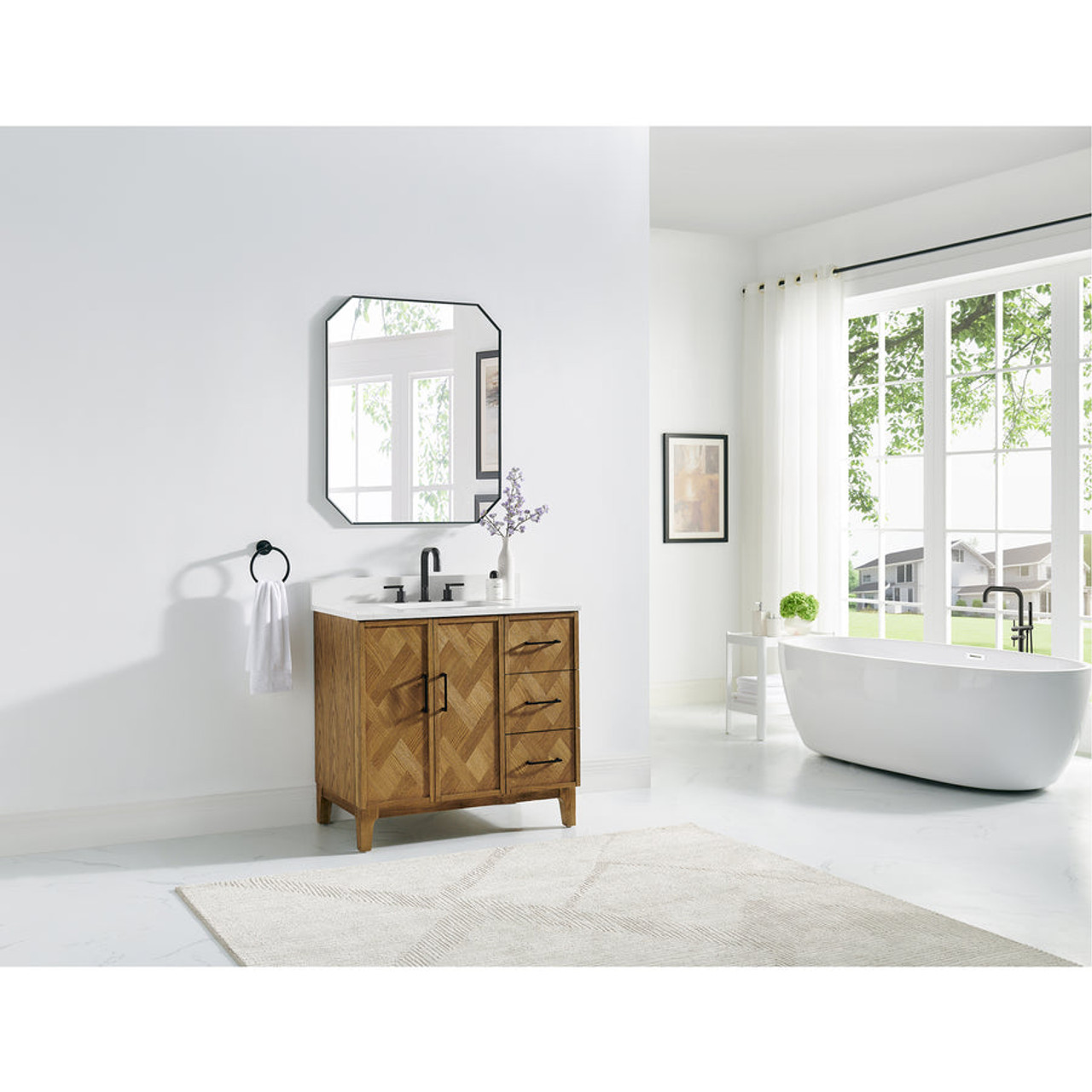 Altair Clara Bathroom Vanity in Weathered Brown with Calacatta Truffle White Quartz Countertop No Mirror