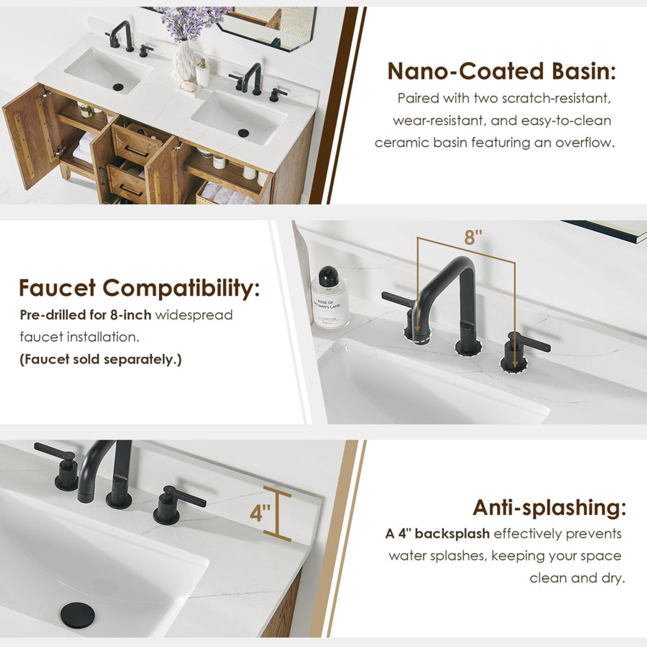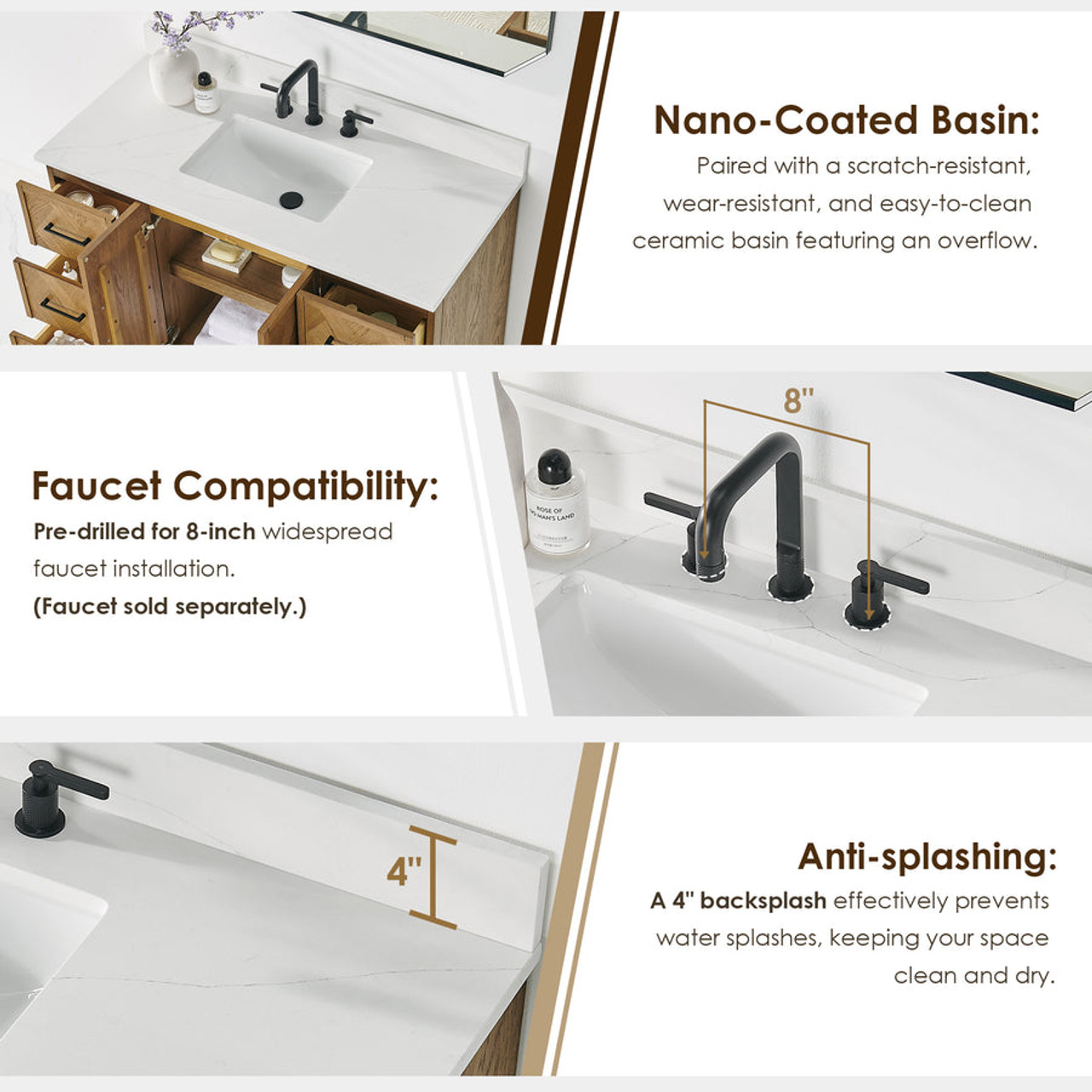 - Faucet Compatibility: Pre-drilled for 8-inch widespread faucet installation.(Faucet sold separately)