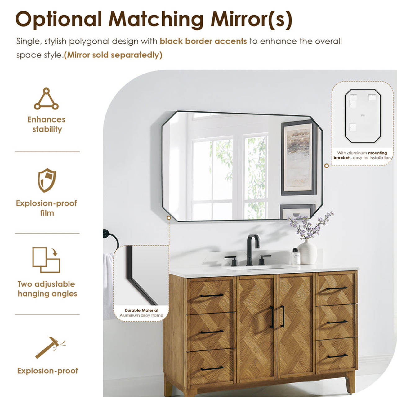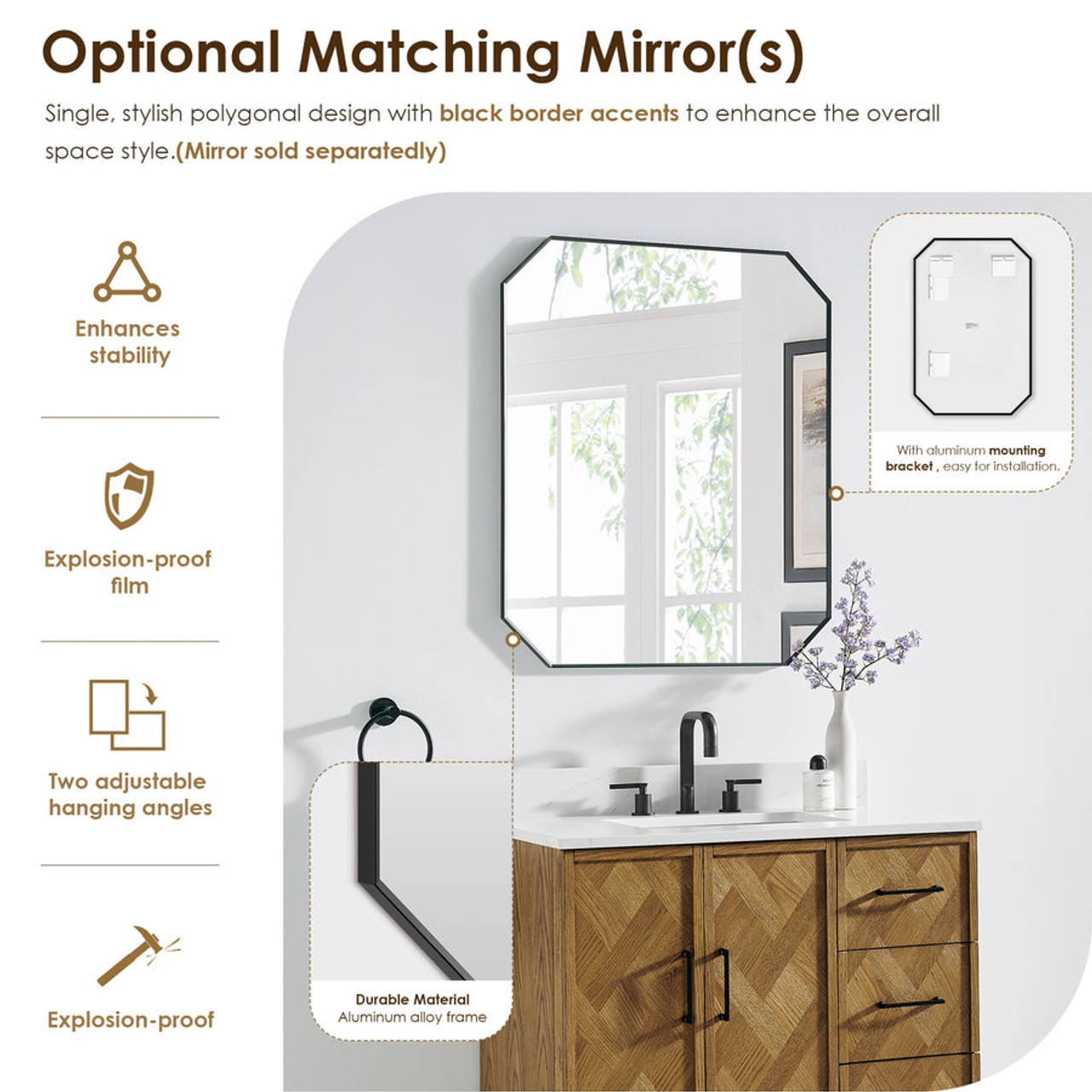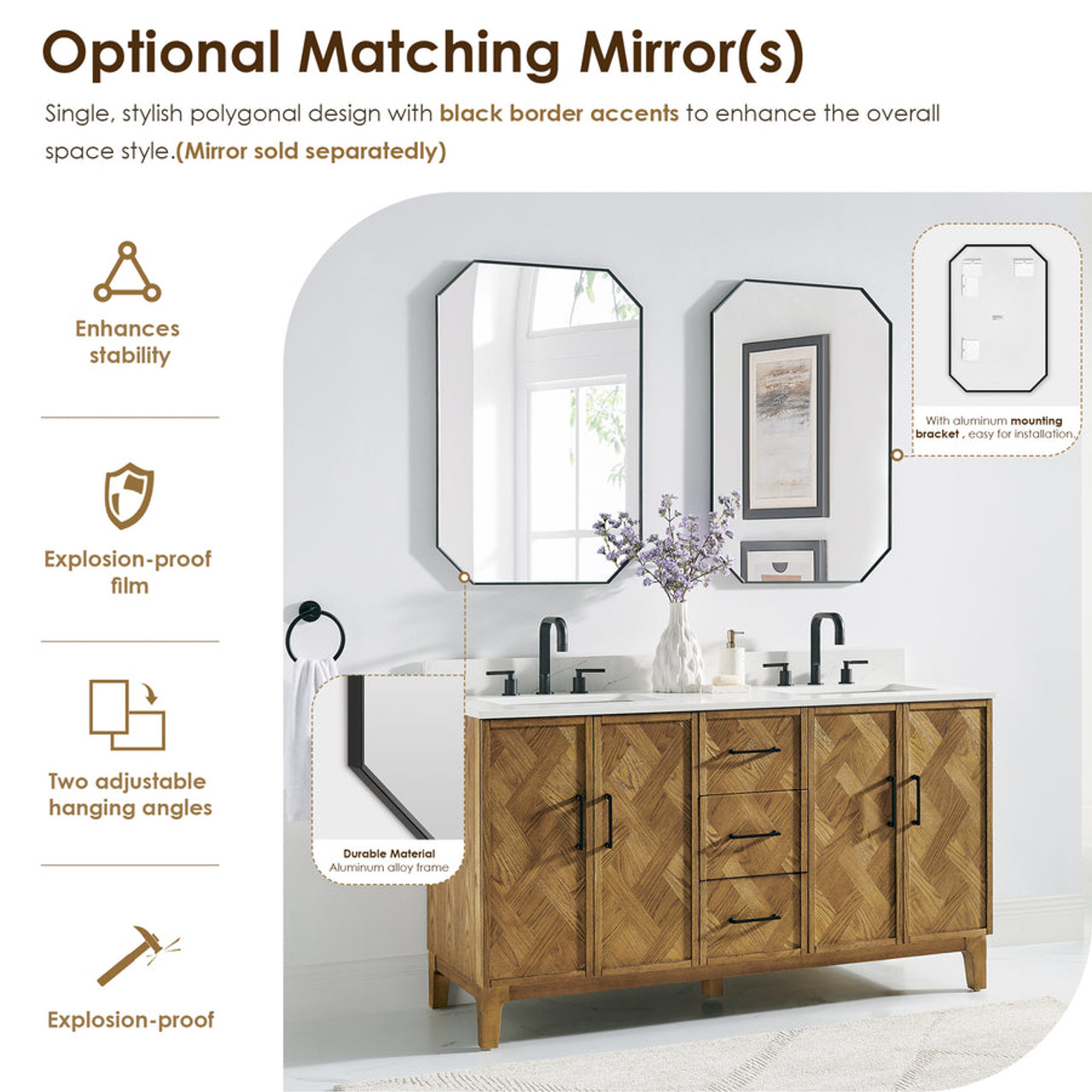 - Optional Matching Mirror(s): Single, stylish polygonal design with black border accents to enhance the overall space style. (Mirror sold separately)