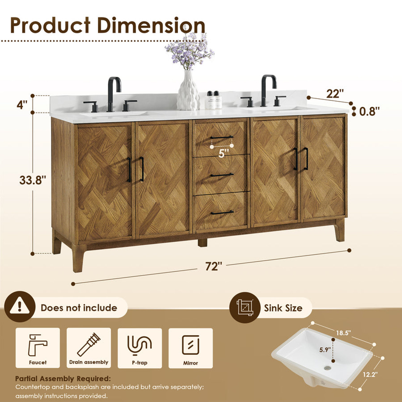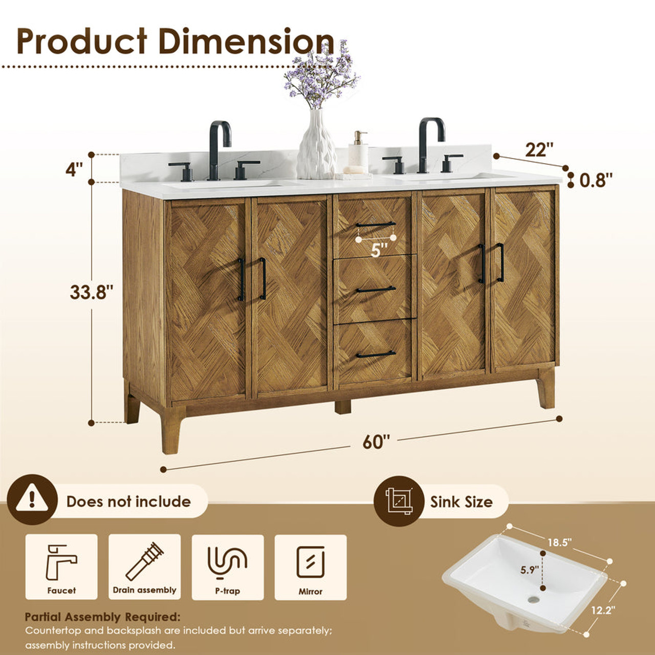 - Partial Assembly Required: Countertop and backsplash are included but arrive separately; assembly instructions provided.