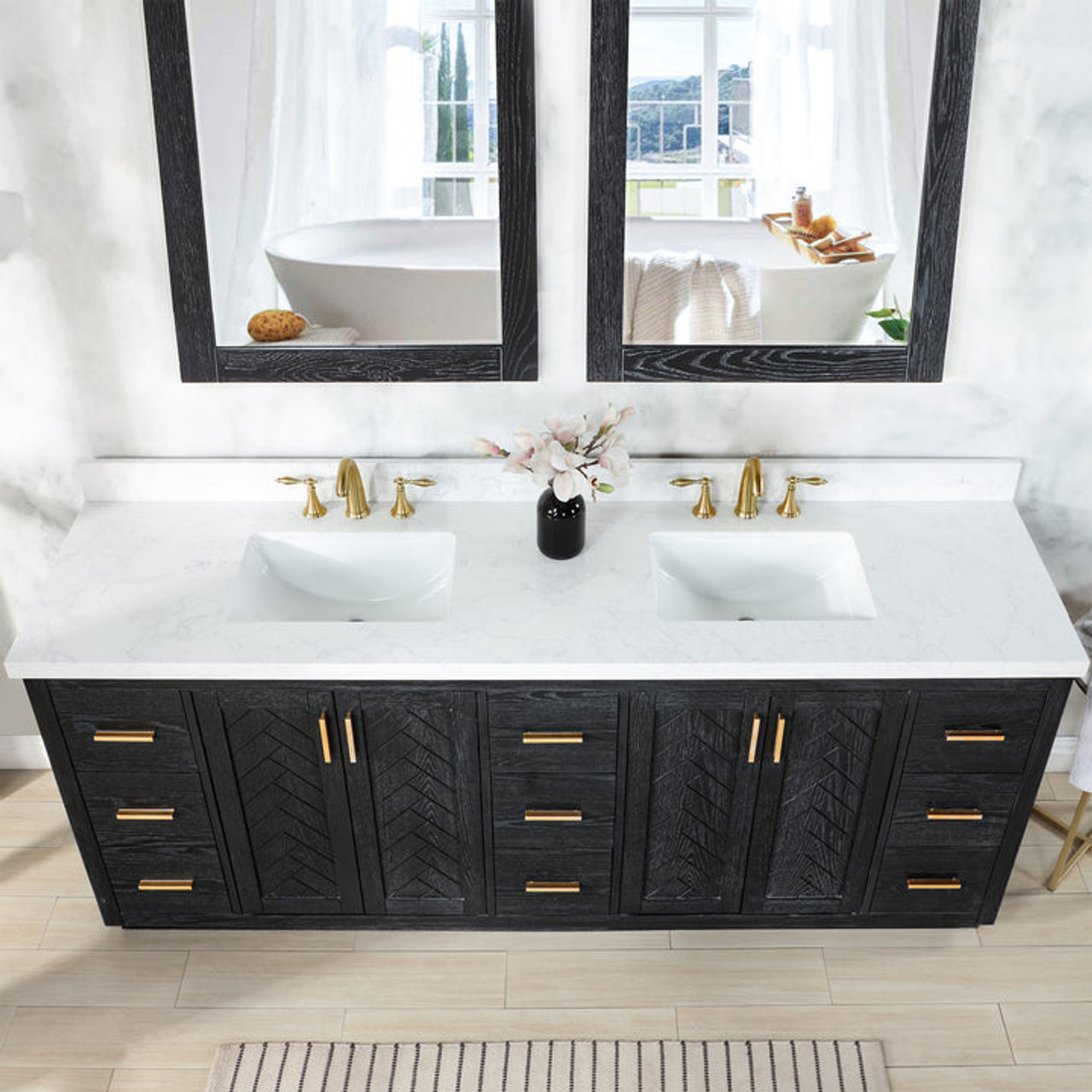Clarity&main 84" Double Bathroom Vanity Set with Grain White Engineered Stone Countertop