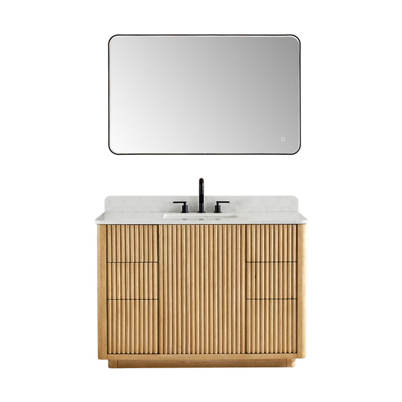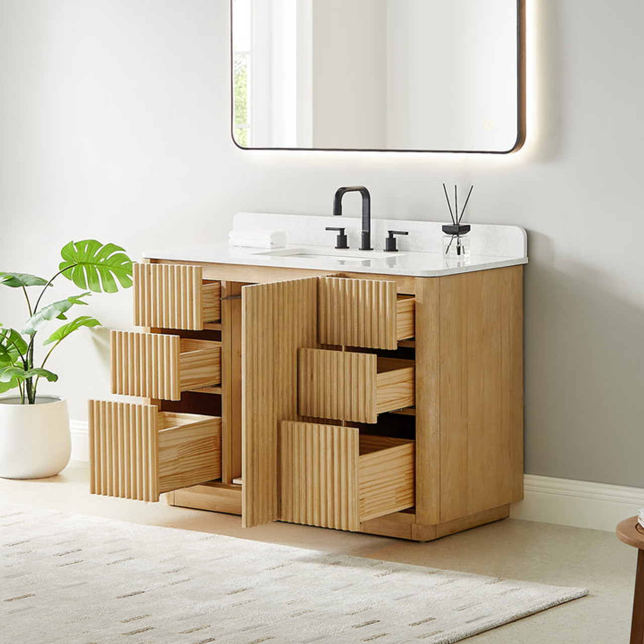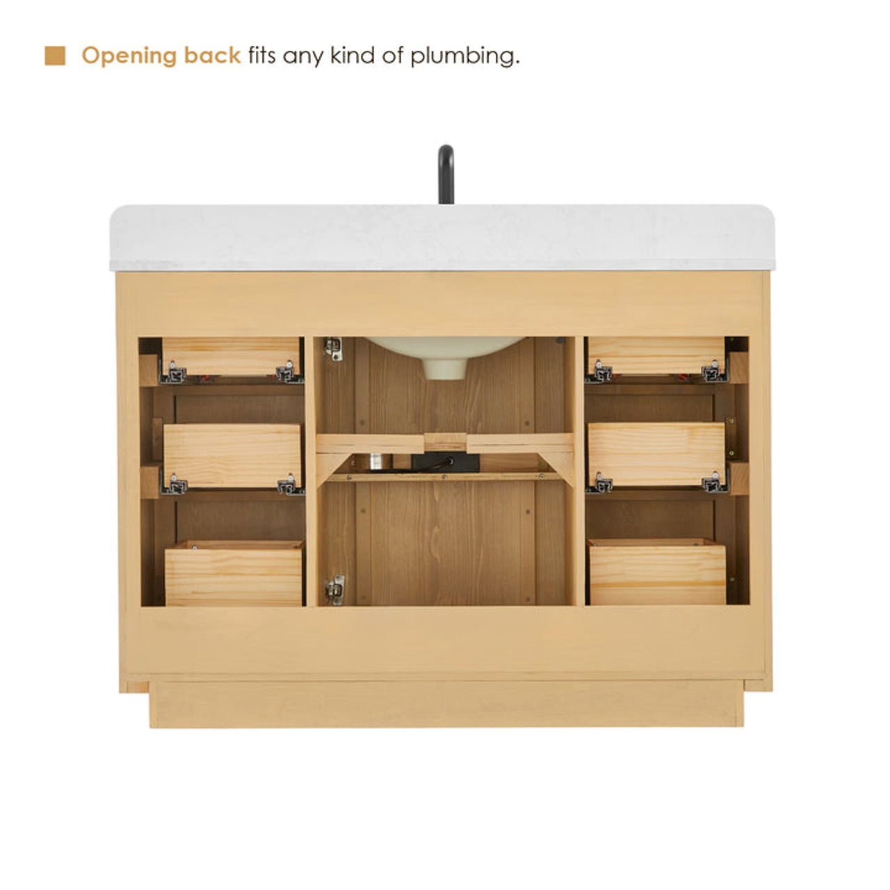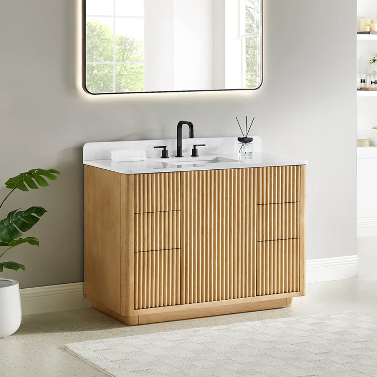 Altair Clayton 48" Single Bathroom Vanity in Washed Light Brown with Grain White Engineered Stone Countertop