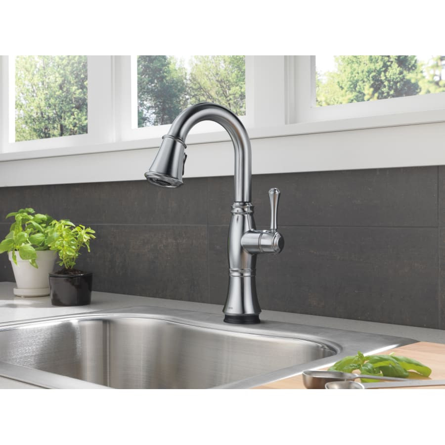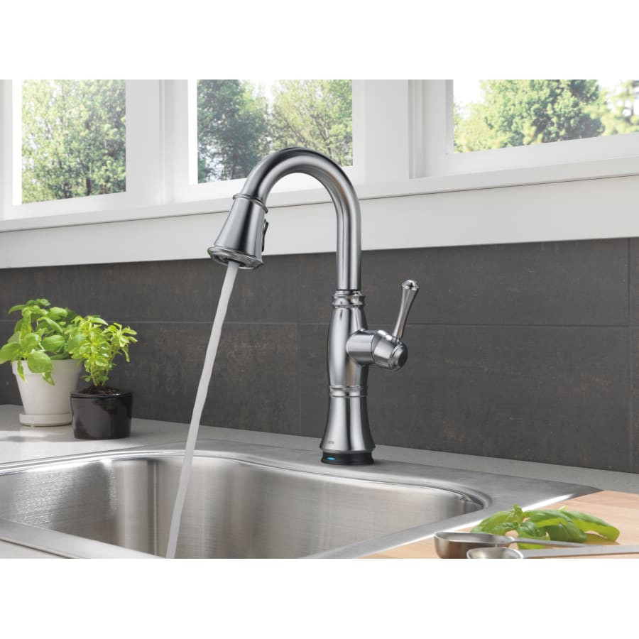 Delta Cassidy Pull-Down Bar/Prep Faucet with On/Off Touch Activation and Magnetic Docking Spray Head - Lumicoat Chrome