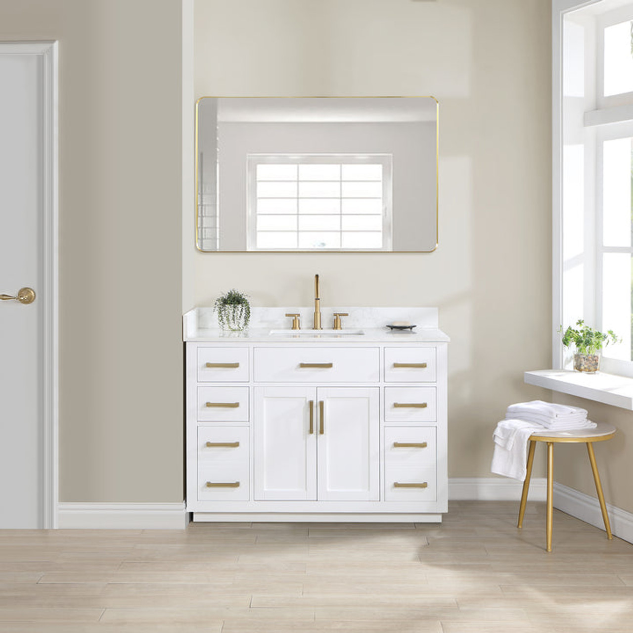 Gavino 48" Single Bathroom Vanity with Grain White Composite Stone Countertop