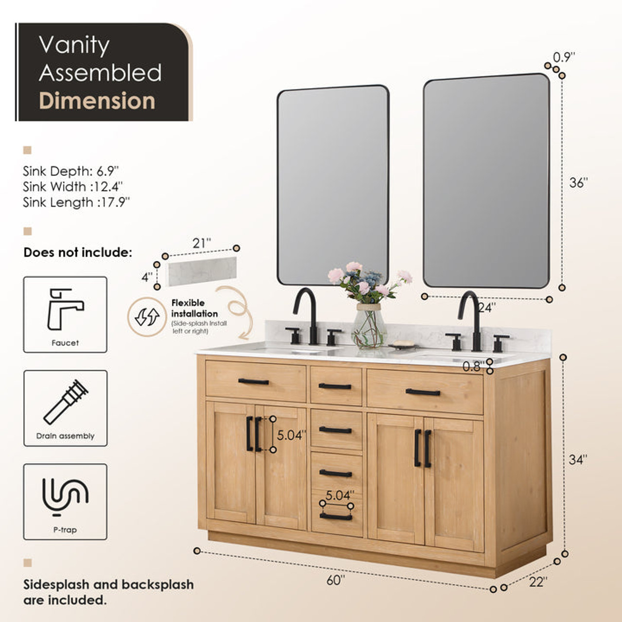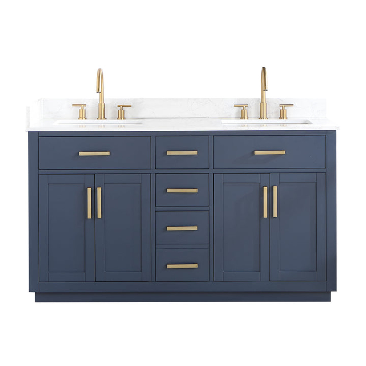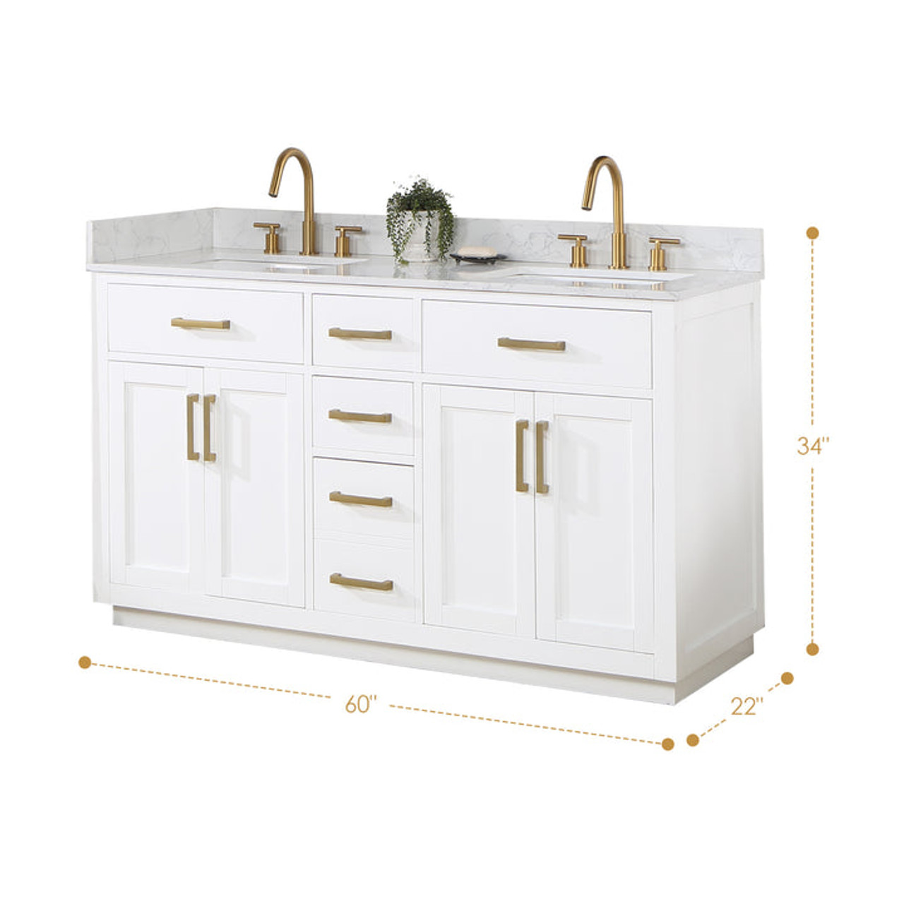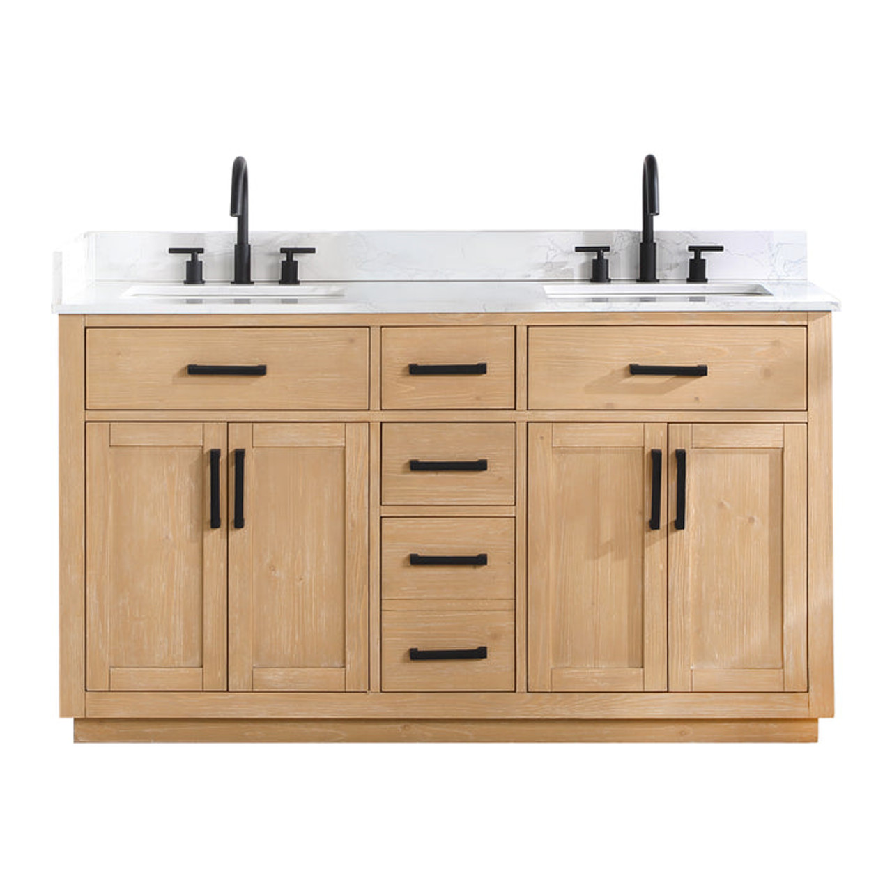 Gavino 60" Double Bathroom Vanity with Grain White Composite Stone Countertop