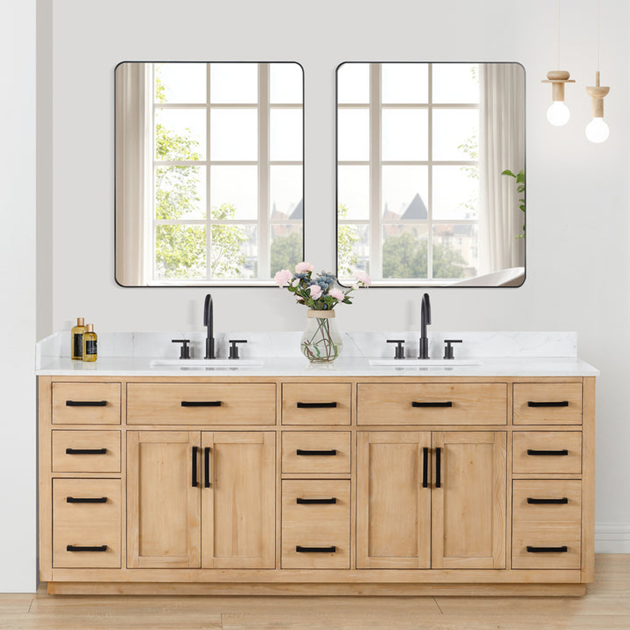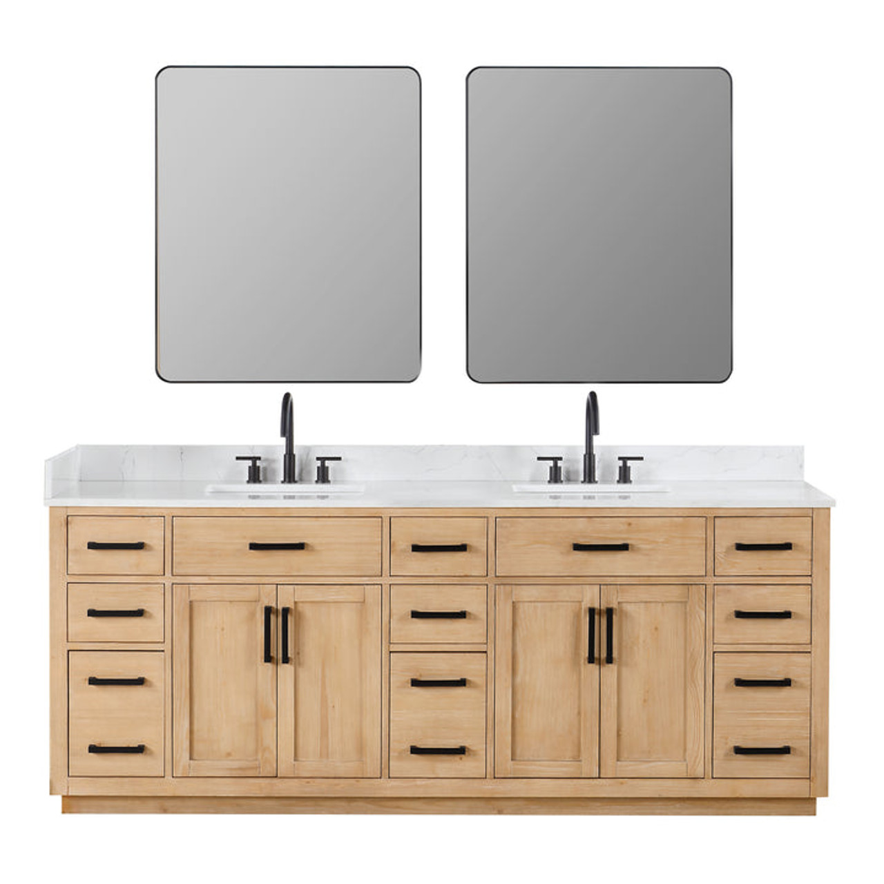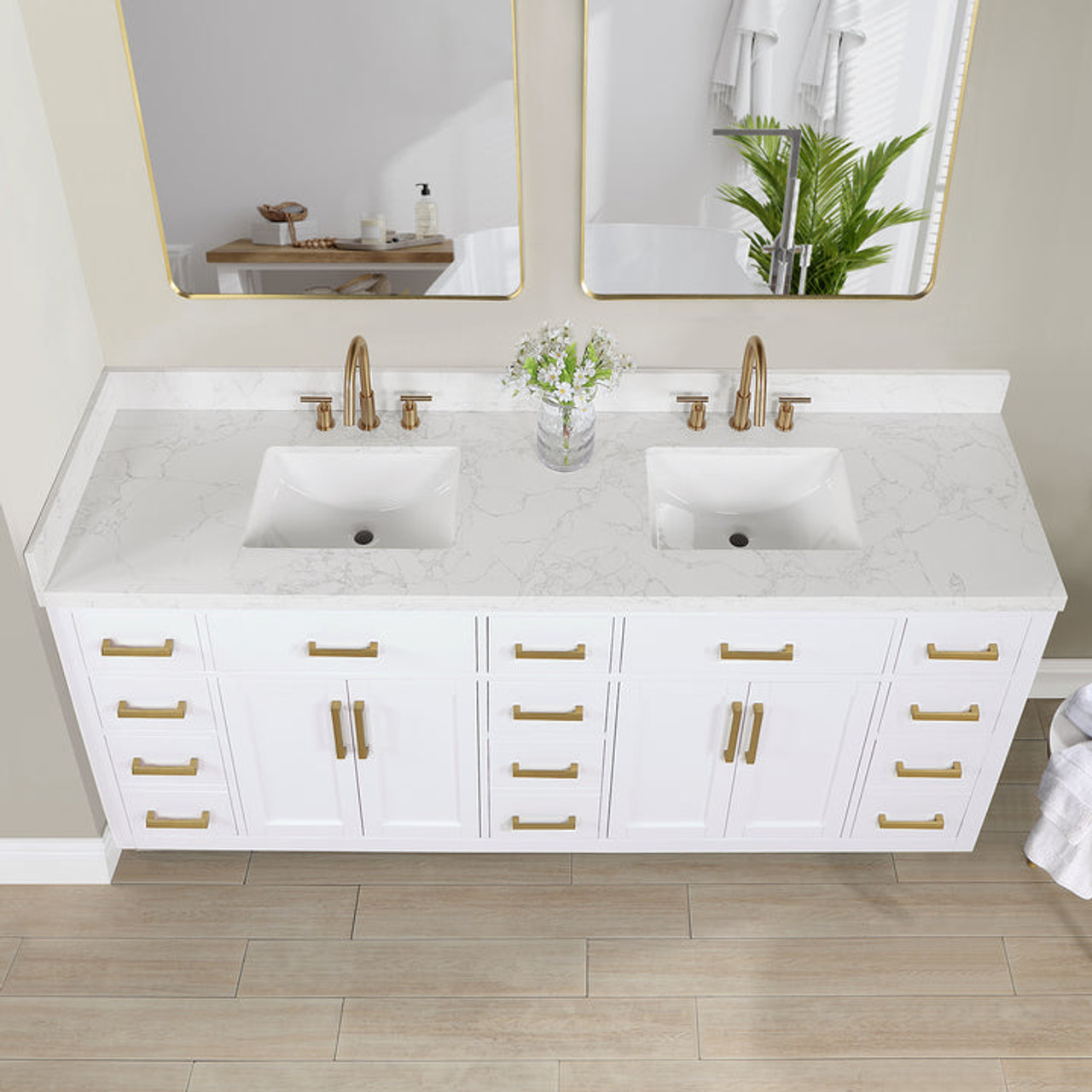 Gavino 84" Double Bathroom Vanity with Grain White Engineered Stone Countertop