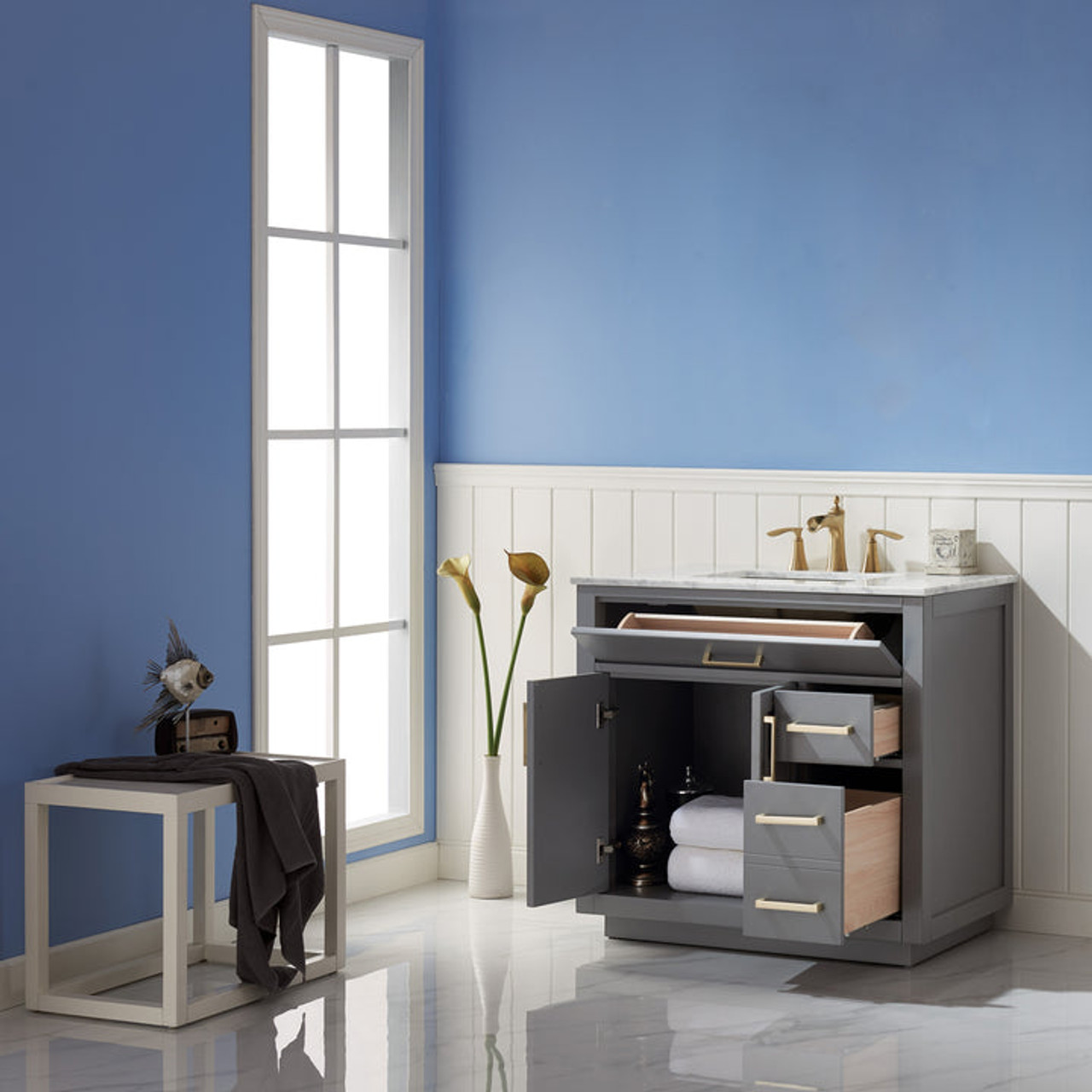 Ivy 36" Single Bathroom Vanity Set with Carrara White Marble Countertop