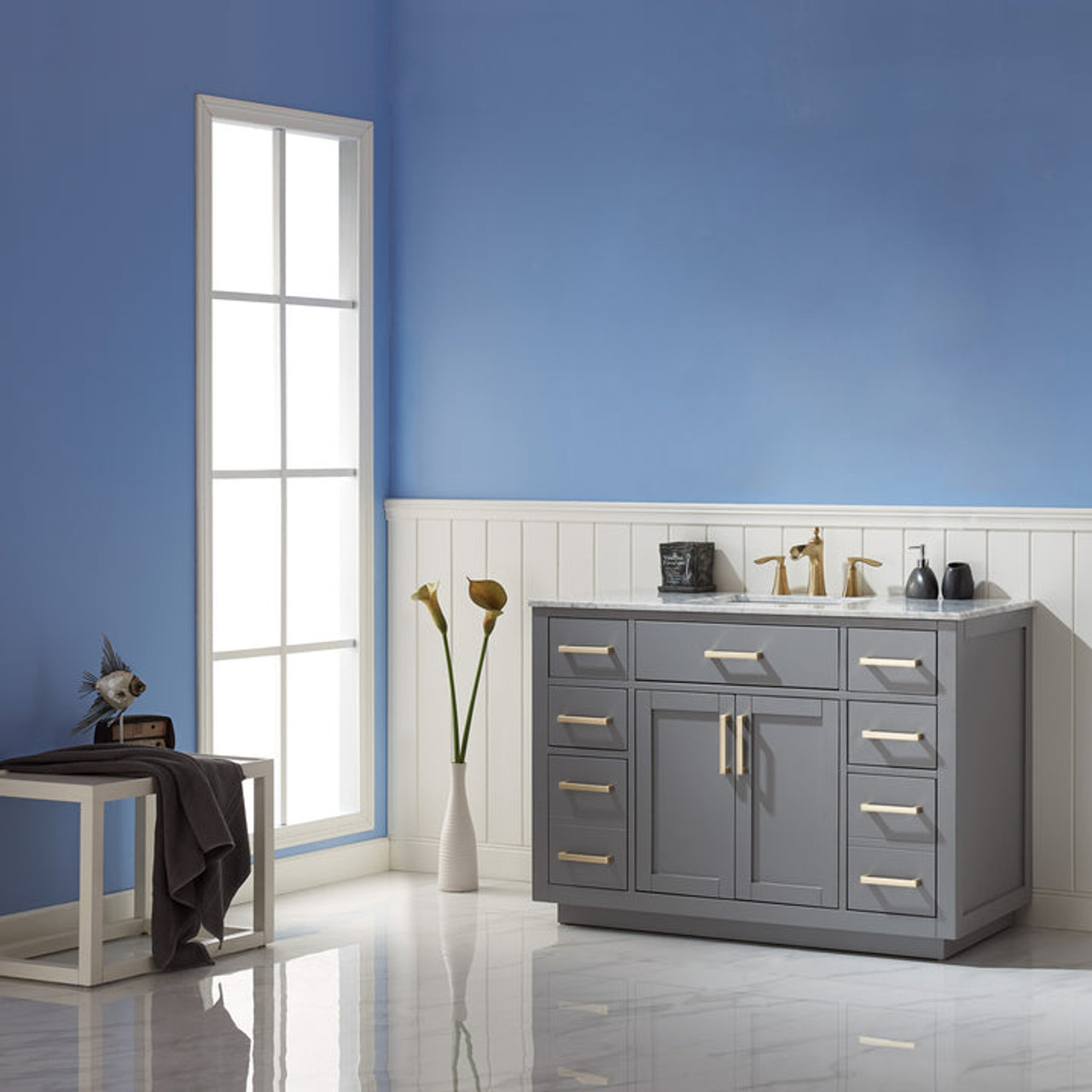 Ivy 48" Single Bathroom Vanity Set with Carrara White Marble Countertop