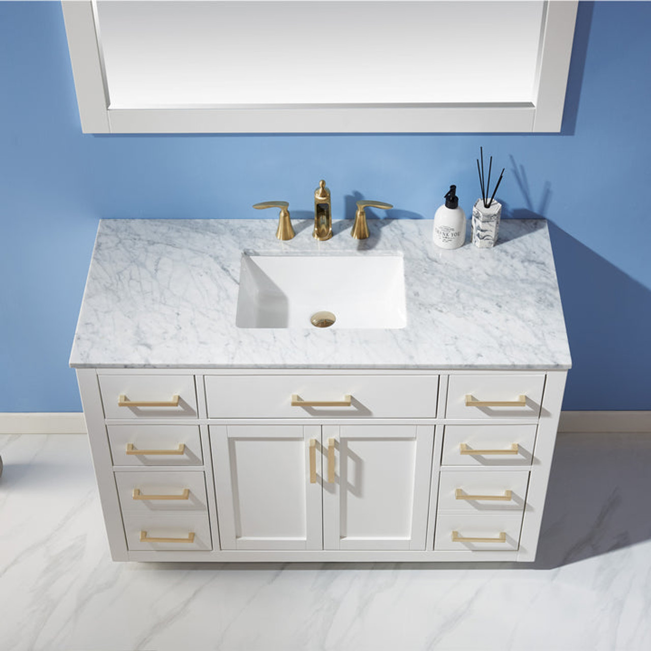 - Countertop: Natural Carrara white marble