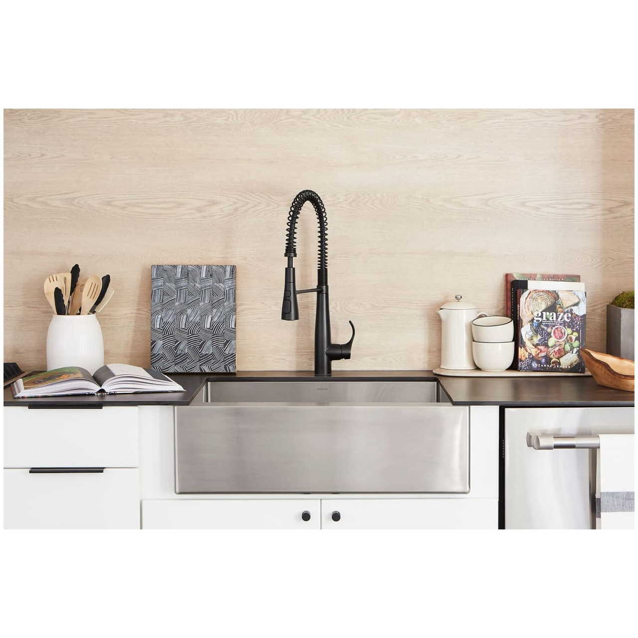 Kohler Simplice 1.5 GPM Single Hole Pre-Rinse Pull Down Kitchen Faucet - Includes Escutcheon - Matte Black