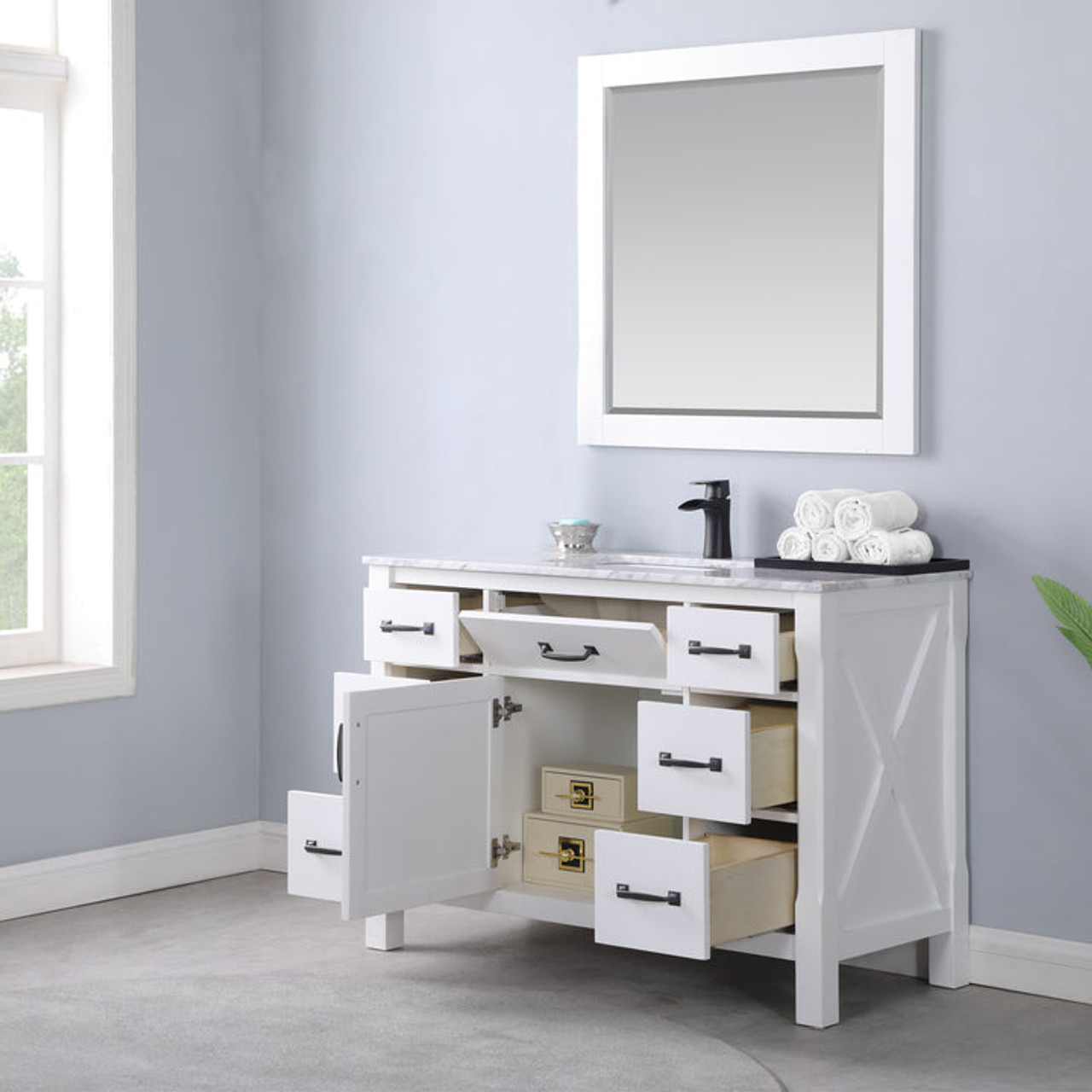 Altair Maribella 48" Single Bathroom Vanity Set in Carrara White Marble Countertop with Mirror