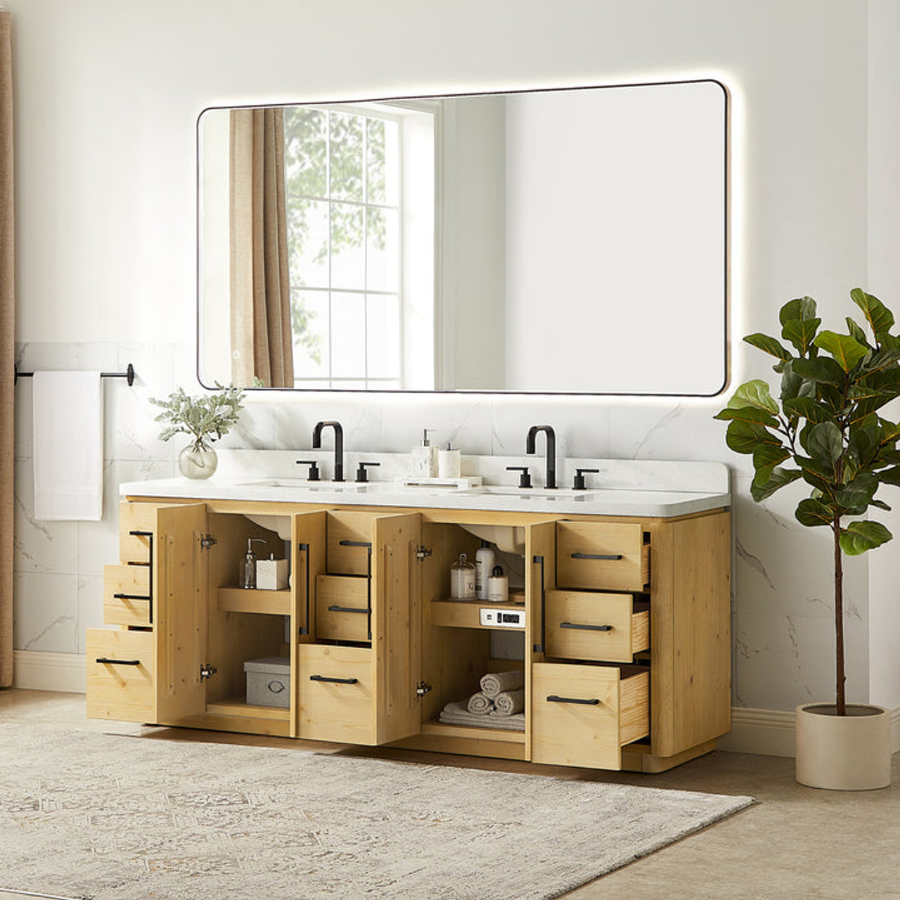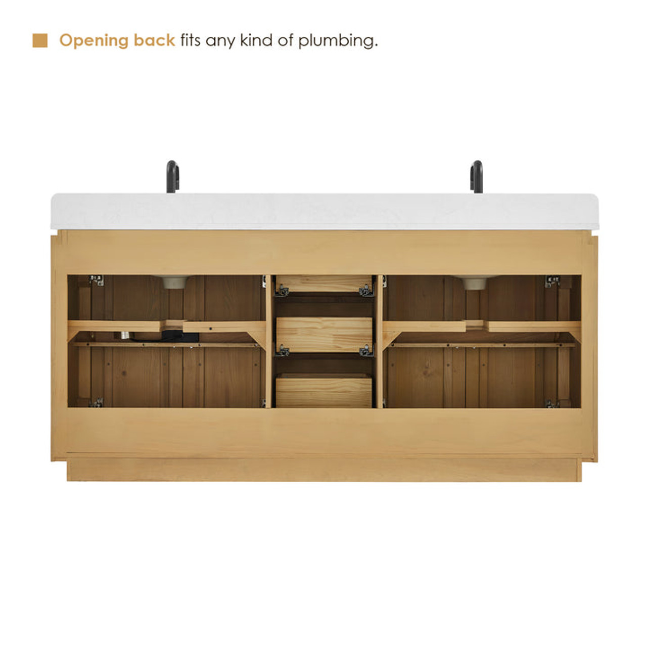 - 60/72 inch : 4 soft-closing doors and 3 soft-closing drawers with full extension slides and dovetail joints to maximize your bathroom storage space.