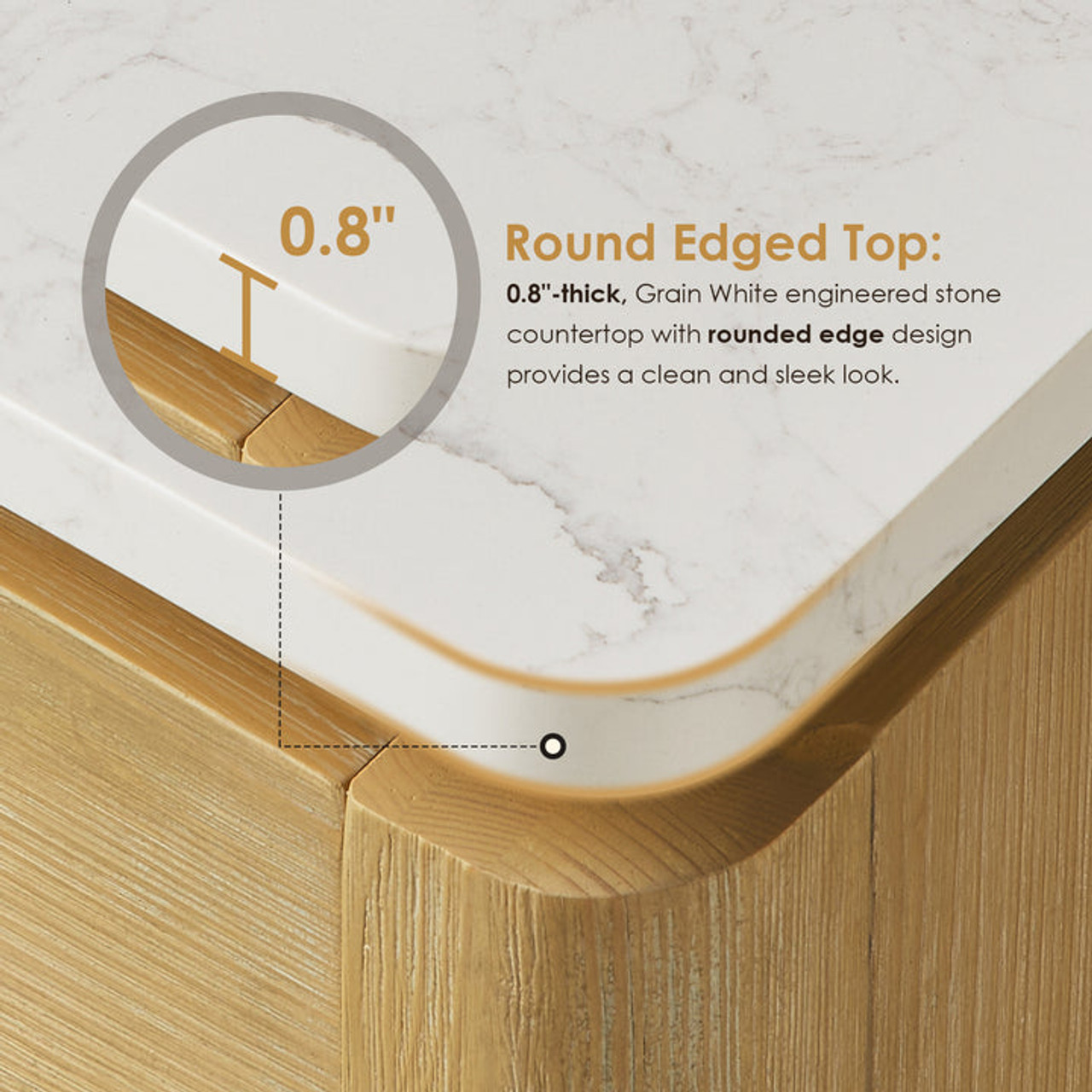 - 0.8”(36/48/54/60/72 inch)/1.6"(84 inch)-thick, Grain White engineered stone countertop with rounded edge provides a clean and elegant look, with an optional 4” backsplash to protect walls from sink splashes.