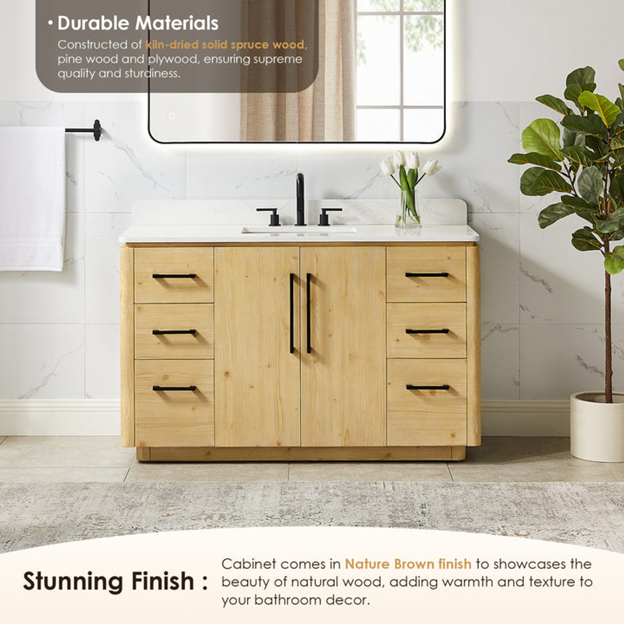 Serene Bathroom Vanity in Nature Brown with Grain White Engineered Stone Countertop