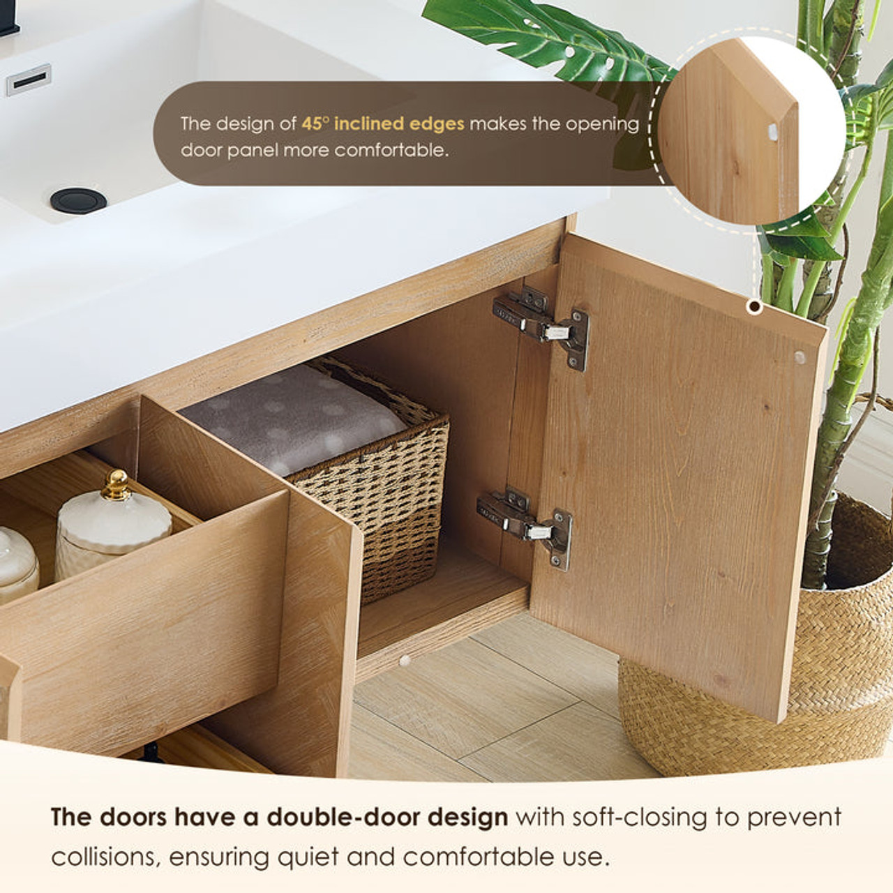 - The design of 45-degree inclined edges makes the opening door panel more comfortable
