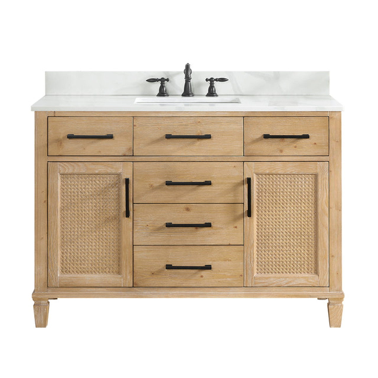 Altair Solana 48" Single Bathroom Vanity in Weathered Fir with Calacatta White Quartz Countertop