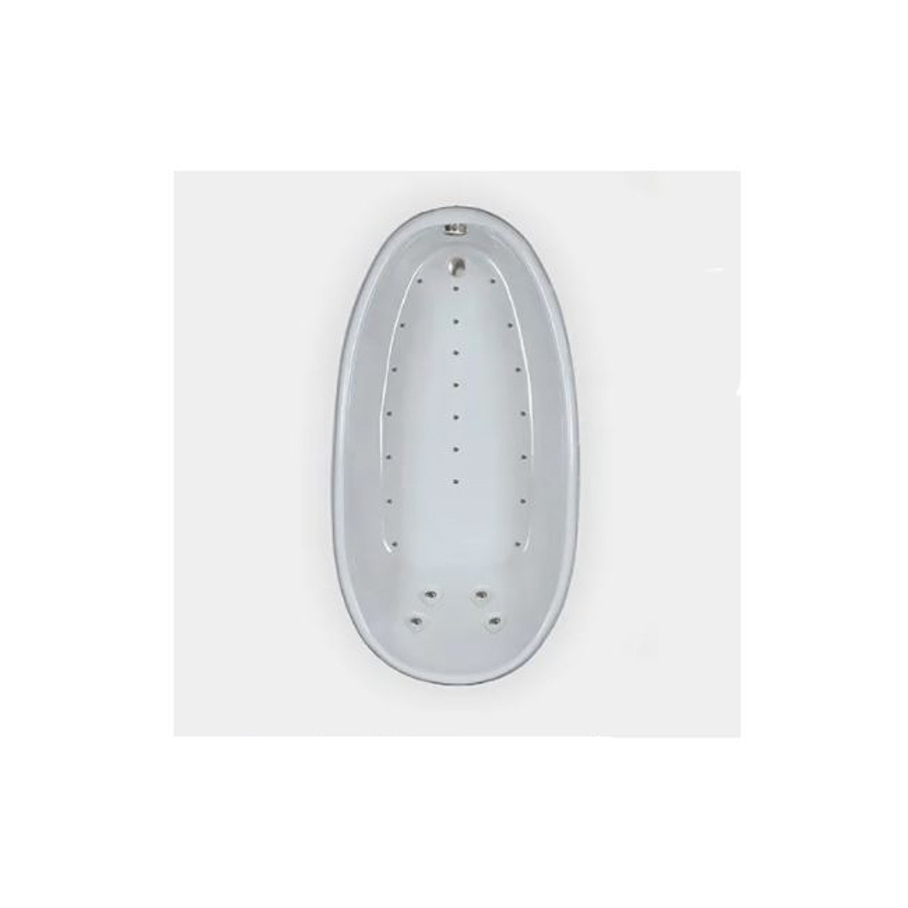 A luxurious one person air bath with large bathing area and extended leg room. The top of the bathtub has a stylish rolled deck. You won’t find a 72”x36” oval design with the leg room this bath provides. 4 air jets are placed in the back wall of the tub, a feature that other manufactures don’t often offer.