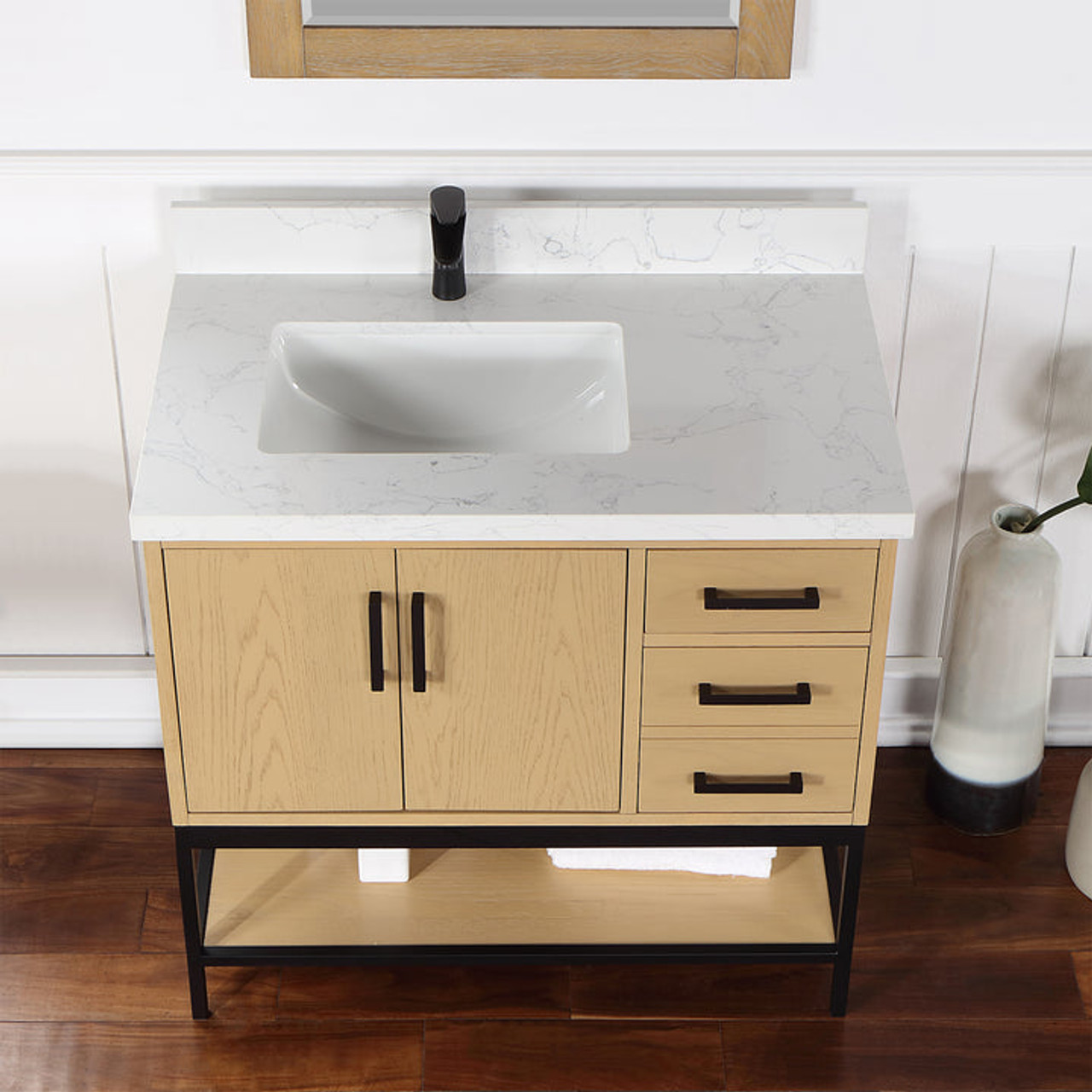 Altair Wildy 36" Single Bathroom Vanity Set with Grain White Composite Stone Countertop